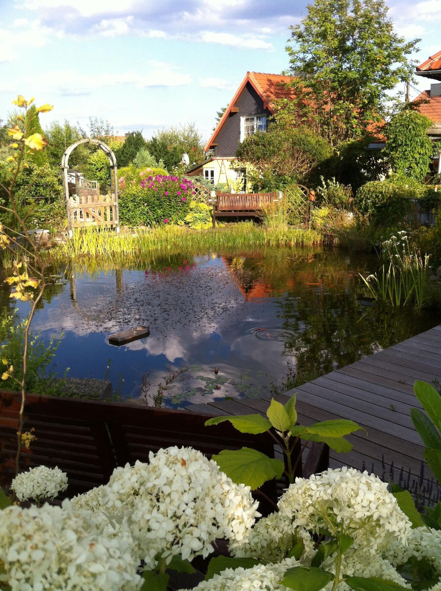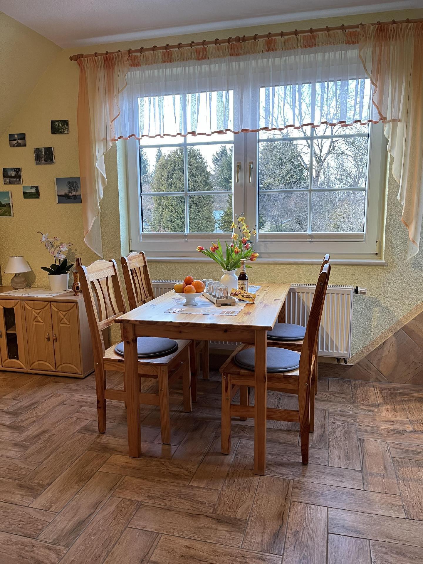 The holiday home is surrounded by a courtyard and a large garden with various idyllic seating areas, a garden pond with a gazebo, a swing and a small wood. Here you can enjoy the sun, nature and peace and quiet or use the barbecue provided. There is plenty of garden furniture available. The garden is not for exclusive use, also the guests of the holiday flat "Anna" and we ourselves will stay here, but due to its size of approx. 2000 square metres there is a secluded "corner" for everyone. You can park directly in front of the house (courtyard), but you can also park your car in the public area in front of the property free of charge.