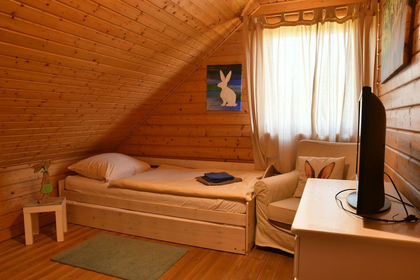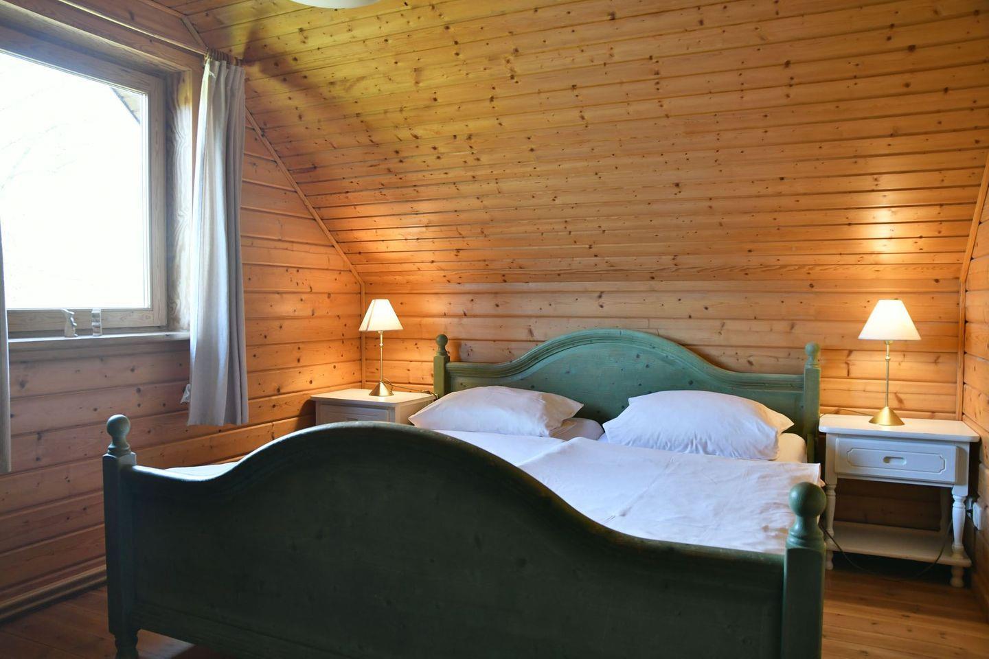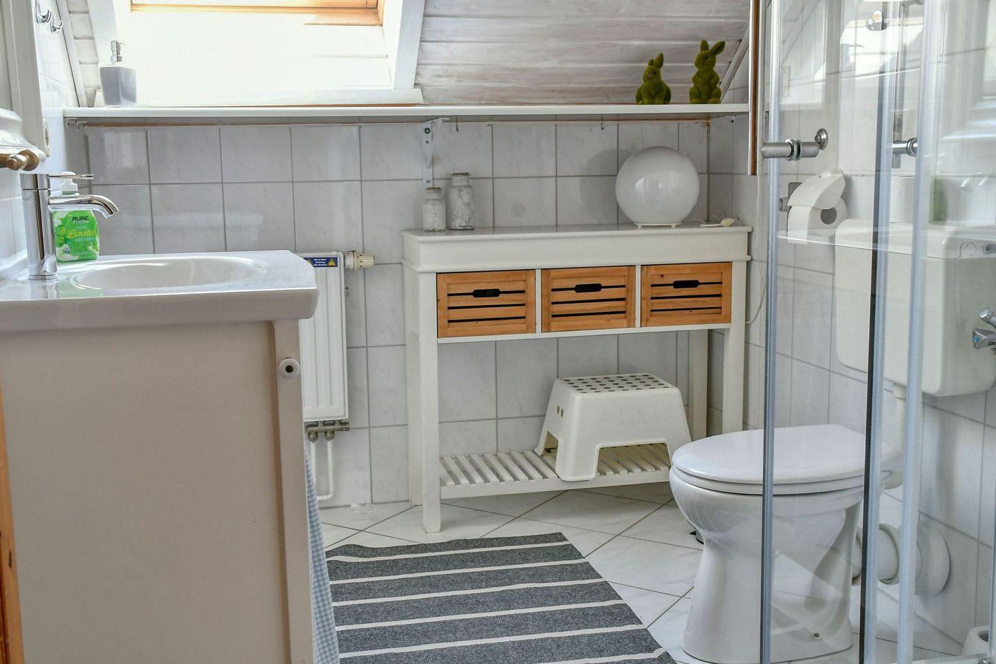 Die Unterkunft verfügt über zwei komfortable Schlafzimmer, die mit Dielenböden ausgestattet sind. Hier können bis zu fünf Gäste einen erholsamen Schlaf finden. Das Badezimmer ist modern und bietet eine Dusche mit Wanne – perfekt für entspannende Badewannenabende nach einem aktiven Tag in der Natur. Eine Waschmaschine steht Ihnen zudem in der gemeinschaftlichen Nutzung zur Verfügung.