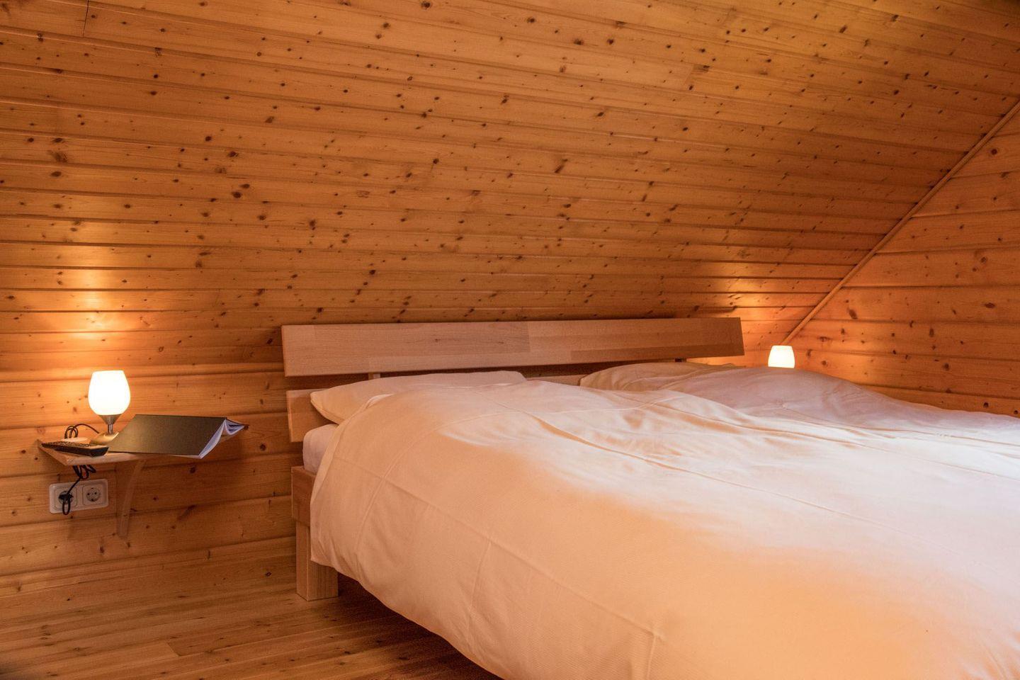 Ferienhaus 8 bietet zwei Schlafzimmer und einen großzügigen Wohnbereich mit Platz für bis zu 4 Personen. Die hellen Naturholzwände und unsere persönlichen Ausstattungen schaffen eine behagliche Wohnatmosphäre. Im Erdgeschoss befinden sich eine zum Wohnraum offene Küche, ein kleiner Abstellraum, ein WC sowie eine teilüberdachte Terrasse mit Mobiliar. Vom Wohnraum führt eine Treppe ins Obergeschoss mit 2 Doppelzimmern, Dusche und WC. Das Haus verfügt über Kinderbett, Hochstuhl, Kindergitter