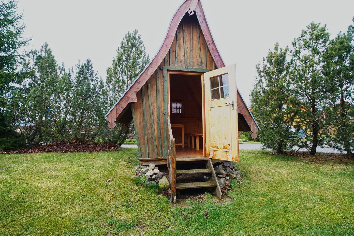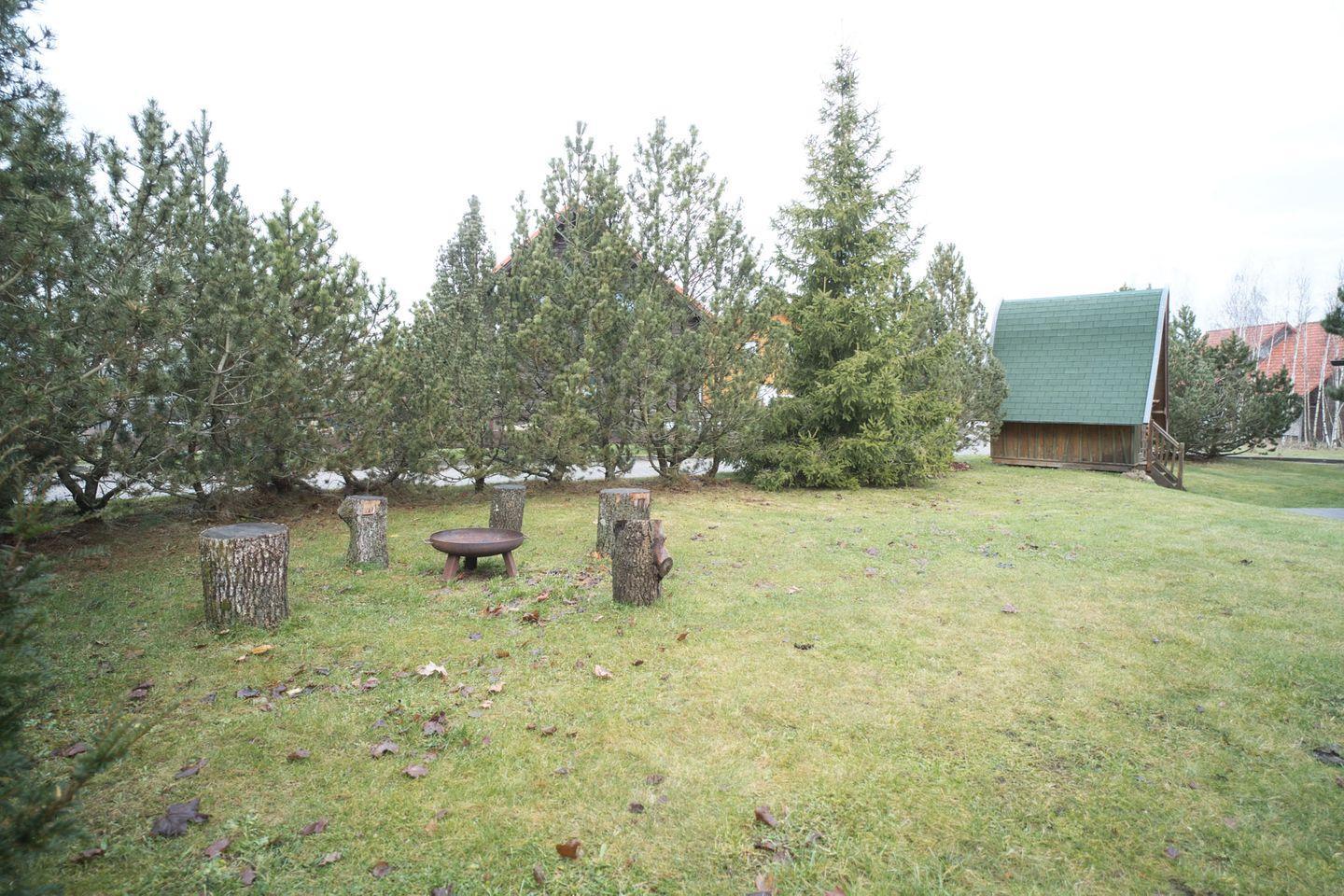 Genießen Sie die Zeit auf der überdachten Terrasse mit Gartenmöbeln, die Ihnen einen atemberaubenden Blick auf die grüne Umgebung bietet. Hier können Sie entspannen, die frische Luft genießen und den Tag mit einem gemeinsamen Grillabend am Kohlengrill ausklingen lassen. Ein ansprechender Garten mit einem tollen Hexenhaus sorgt dafür, dass auch die kleinen Gäste ihren Spaß haben.