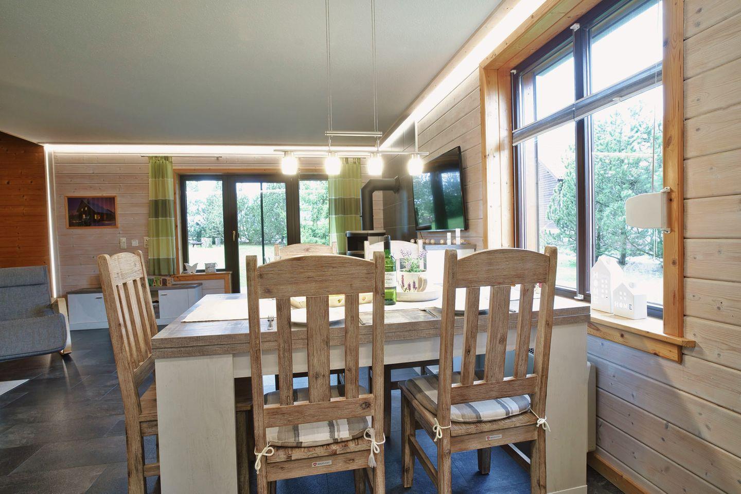 Entdecken Sie das charmante Ferienhaus 114 im malerischen Oberharz am Brocken! Diese moderne und gemütliche Unterkunft bietet Platz für bis zu vier Personen und überzeugt mit zwei Schlafzimmern, einem geräumigen und gemütlichen Wohnzimmer mit Kamin und Fußbodenheizung und einer voll ausgestatteten offenen Küche. Genießen Sie entspannende Stunden auf der überdachten Terrasse mit dem Blick auf das Hexenhäuschen für ihre Kleinen in welchem diese auch übernachten könnten.