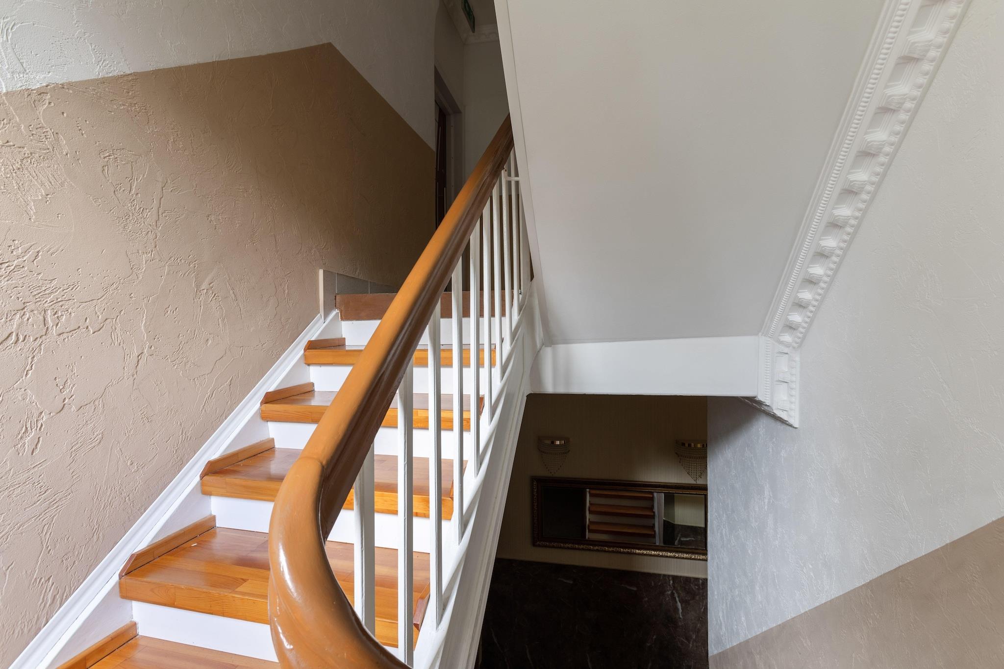 Stueetage: (fællesrum, bryggers) På 1. etage: (Køkken(elkedel, kaffemaskine, køleskab), Stue/soveværelse(dobbeltseng, Fjernsyn, sofahjørne), badeværelse(bruser, håndvask, toilet, føntørrer)) terrasse, parkering