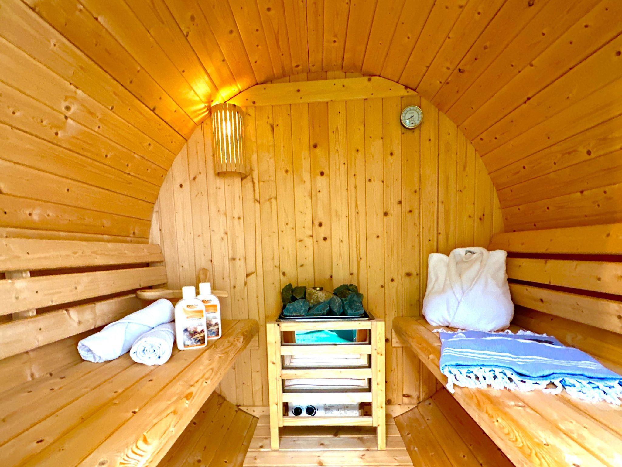 Genießen Sie einige ruhige Stunden allein oder mit Ihrer Lieblingsbegleitung. Neben einem Bademäntel, erhalten Sie von uns Sauna- und Handtücher sowie Einmalbadeschuhe. Ein Saunaaufguss mit außergewöhnlichen Aromen und ein Saunasalz wird ebenfalls von uns gestellt.