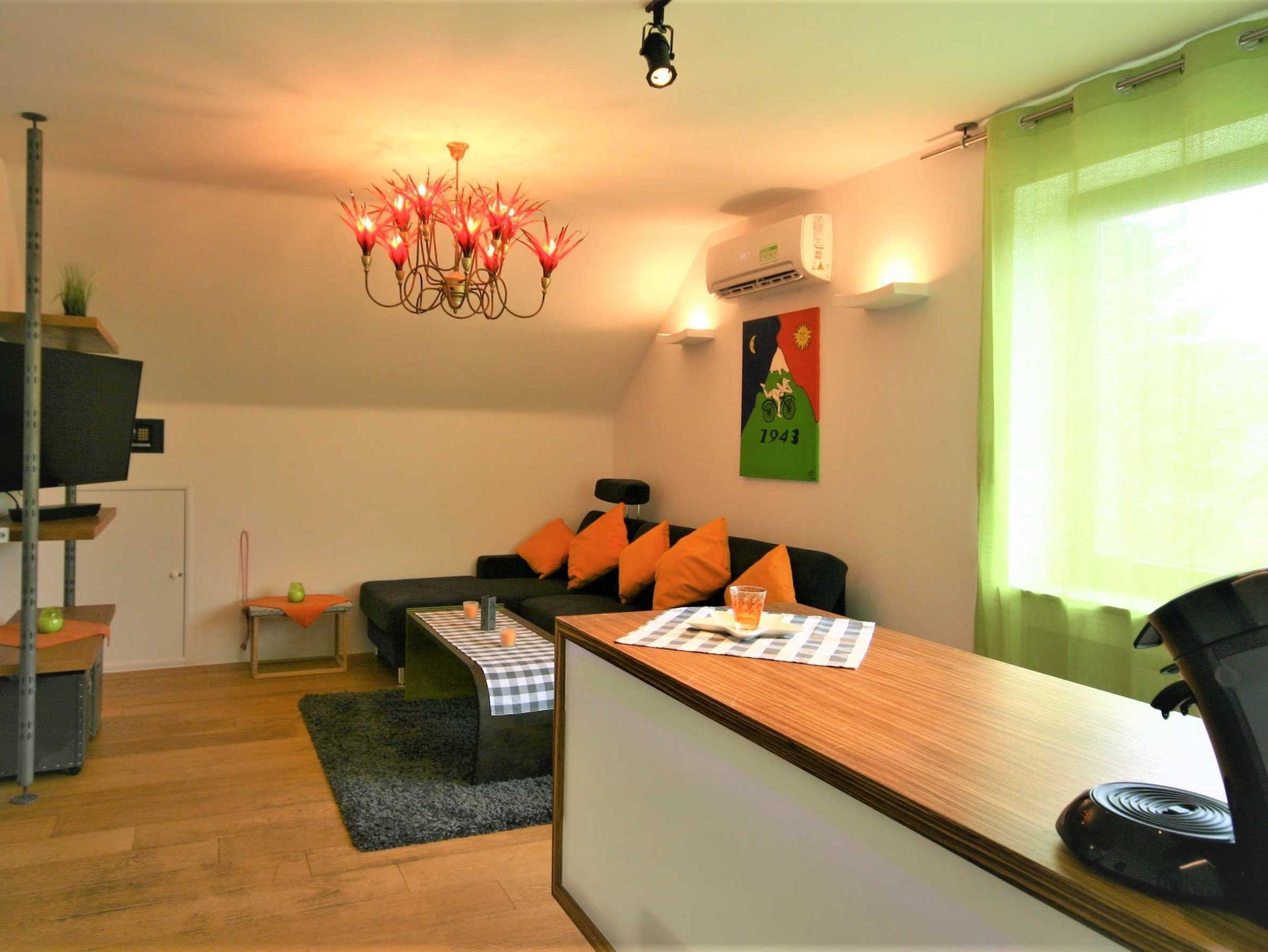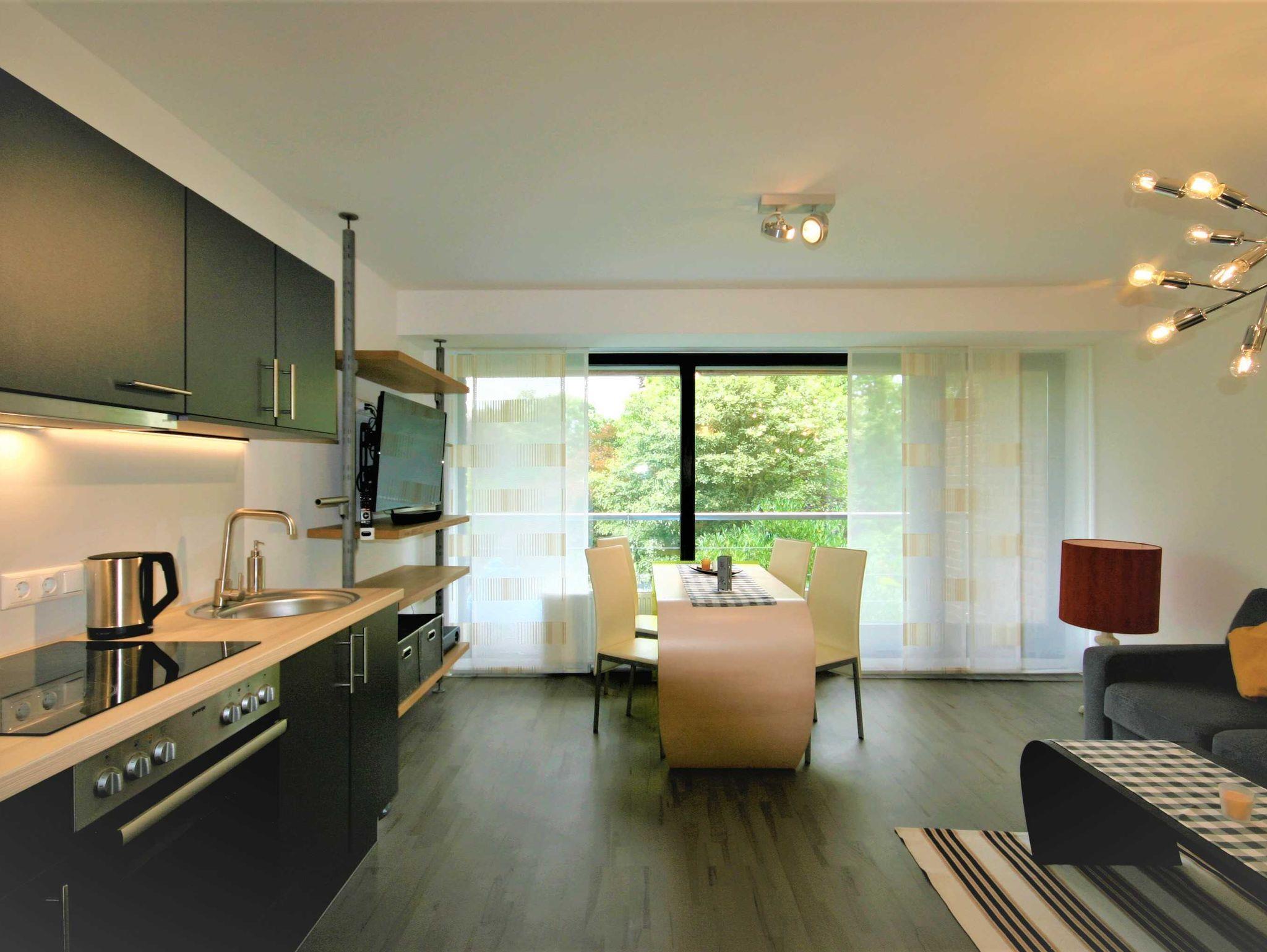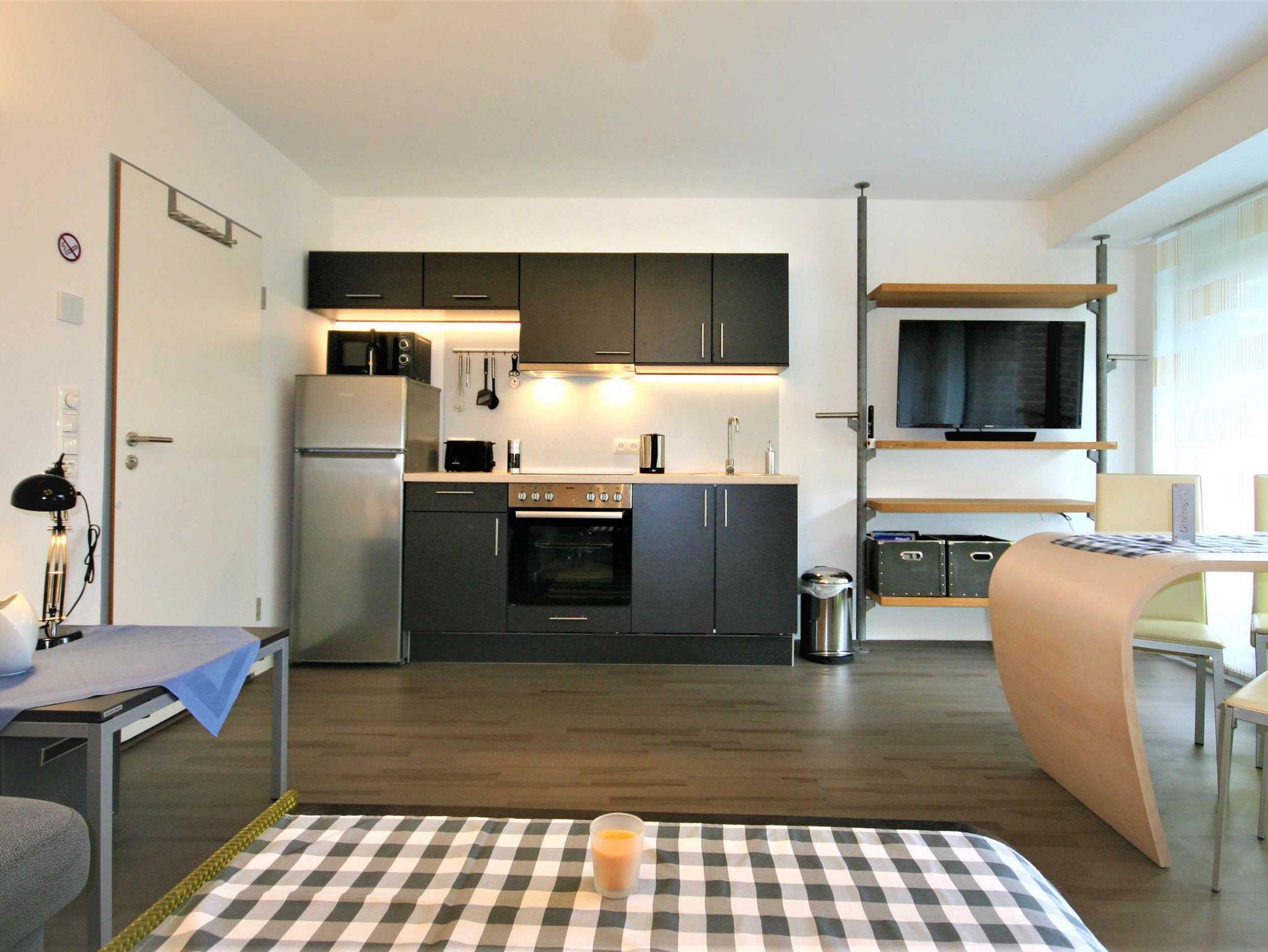 Einchecken, ankommen, Wohlfühlen. Unser 35 qm großes Apartment bietet ein freundliches und sonniges Ambiente zum Wohlfühlen. Die großzügige Ausstattung liefert alles, was einen komfortablen Urlaub abrundet: ein gemütliches Bett, mit einer Auswahl von verschieden großen Kissen, eine gut ausgestattete Küchenzeile mit einer Kochmöglichkeit, einer Mikrowelle, einer Kaffeemaschine und Geschirr zur Selbstverpflegung, sowie ein geräumiges Badezimmer, ausgestattet mit Handtüchern, Seifen und weiteren Hygieneartikeln. Im Wohnraum befindet sich ein großes Ecksofa mit der Möglichkeit es für zwei Personen zu einem Schlafsofa umzufunktionieren.