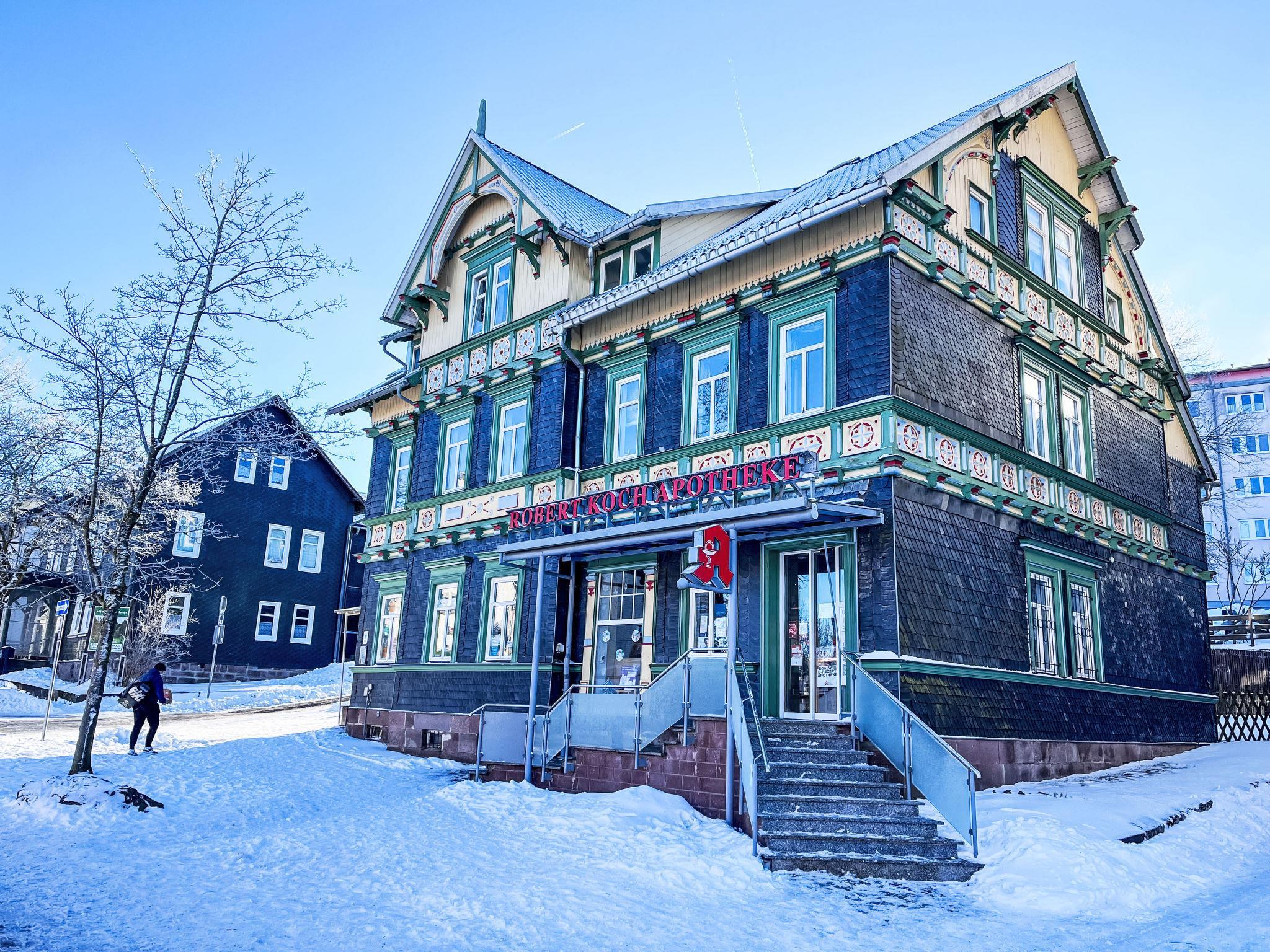 Oberhof: Beautiful apartment block "Filmtheater Oberhof", 820 m a.s.l.. In a central position in the residential district. In the house: storage room for skis, washing machine, tumble dryer (for shared use). Parking at the house. Grocery, restaurant 250 m, 5 minute walk to the centre, bus stop 250 m, railway station "Zella-Mehlis" 10 km, indoor swimming pool 500 m, bathing lake "Waldsee" 4 km. Cycle lane 1 km, slopes 2 km, ski school 3 km, cross country ski track 1 km. Well-known ski regions can easily be reached: LOTTO Thüringen Snowpark 2 km. Hiking paths: Schneekopf 10 km, Rennsteig 1 km.
