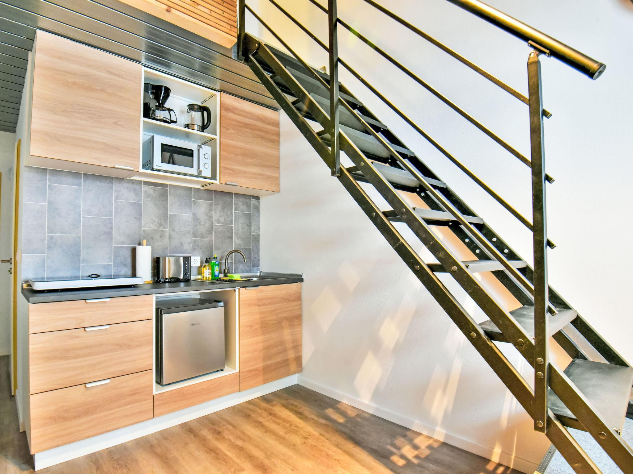 "Millie", 2-room apartment 36 m2 on 2 levels. Fully renovated in 2023, practical and modern furnishings: kitchen-/living room (2 ceramic glass hob hotplates, toaster, kettle, microwave, electric coffee machine) with dining table and satellite TV (flat screen). Shower/WC. Upper floor: with sloping ceilings, 1 large room with 1 x 2 bunk beds (90 cm, length 200 cm), 1 double bed (180 cm, length 200 cm). Heating. Facilities: children's high chair, baby cot. Internet (WiFi, free). Please note: non-smokers only. Maximum 1 pet/ dog allowed. Smoke alarm, fire extinguisher.