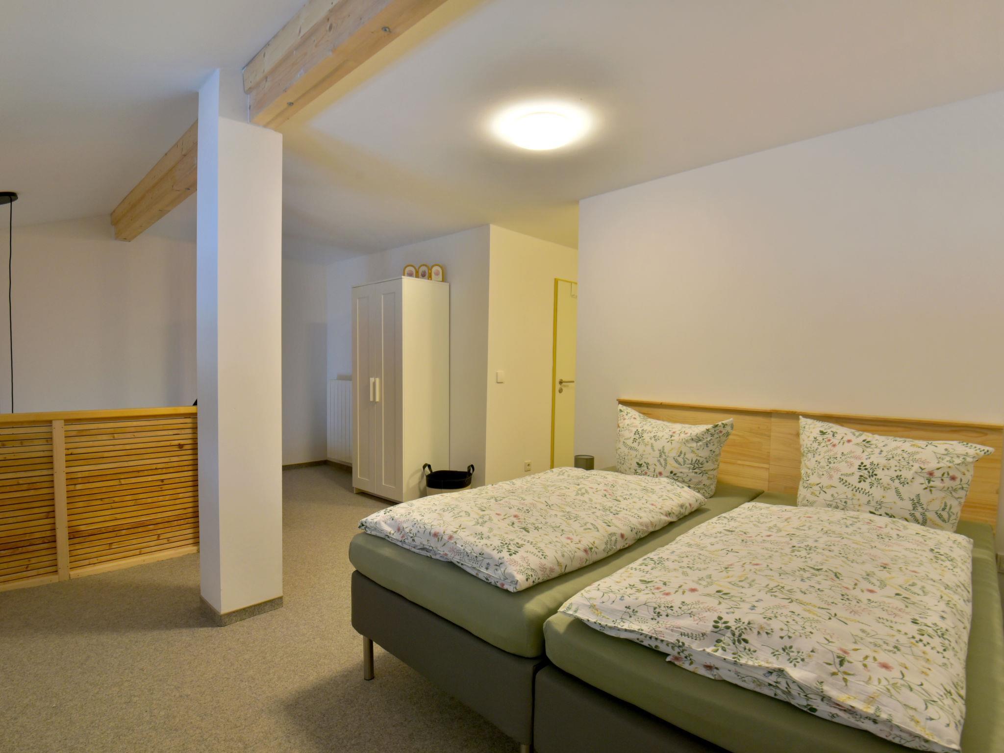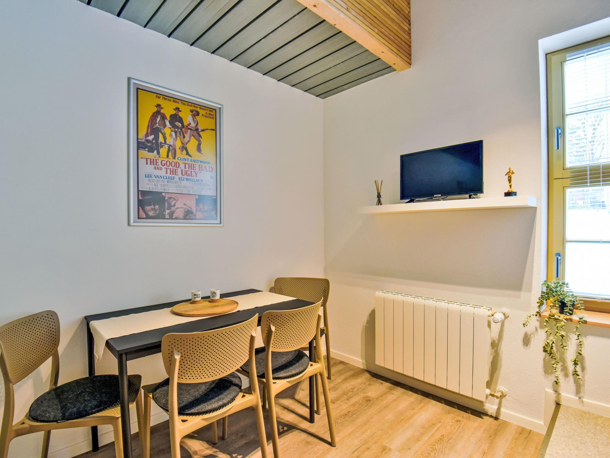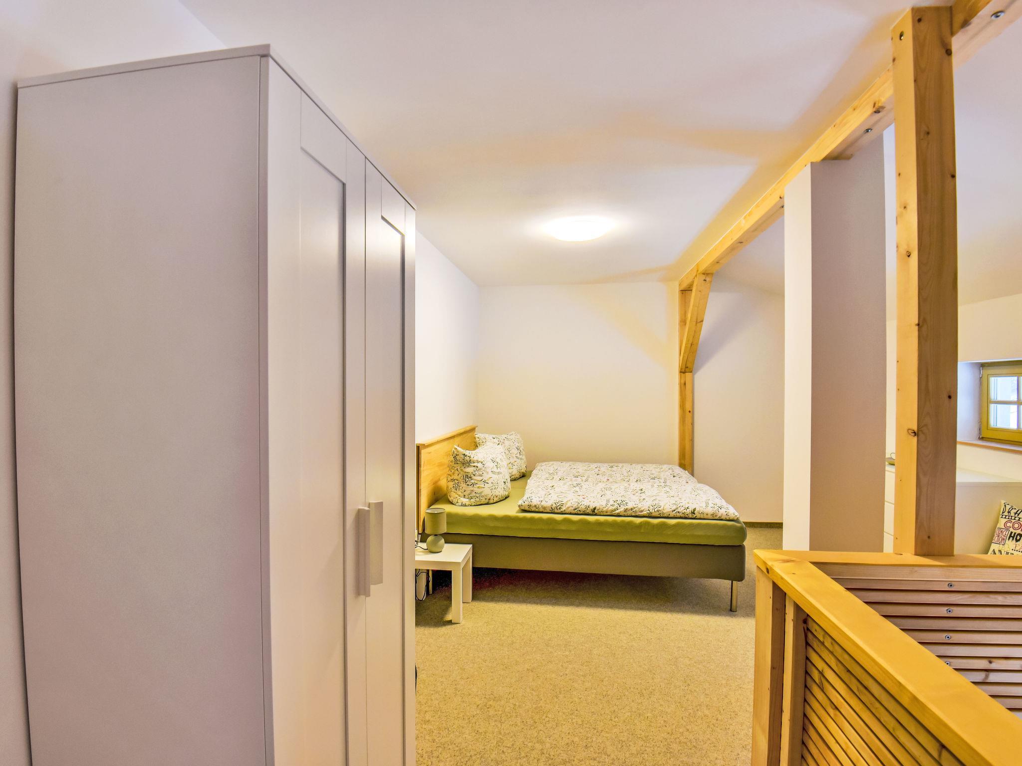 "Clint", 2-room apartment 36 m2 on 2 levels. Fully renovated in 2023, practical and modern furnishings: kitchen-/living room (2 ceramic glass hob hotplates, toaster, kettle, microwave, electric coffee machine) with dining table and satellite TV (flat screen). Shower/WC. Upper floor: with sloping ceilings, 1 large room with 1 x 2 bunk beds (90 cm, length 200 cm), 1 double bed (180 cm, length 200 cm). Heating. Facilities: children's high chair, baby cot. Internet (WiFi, free). Please note: non-smokers only. Maximum 1 pet/ dog allowed. Smoke alarm, fire extinguisher.