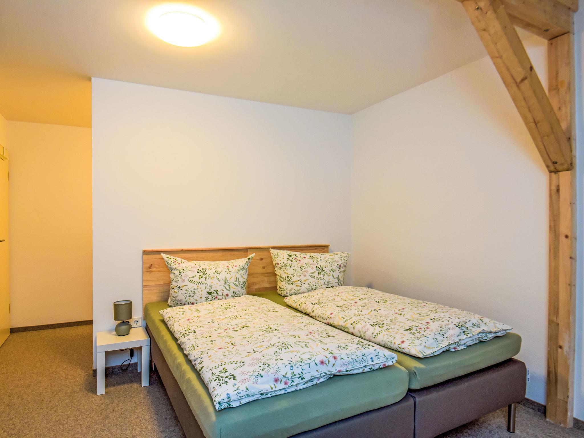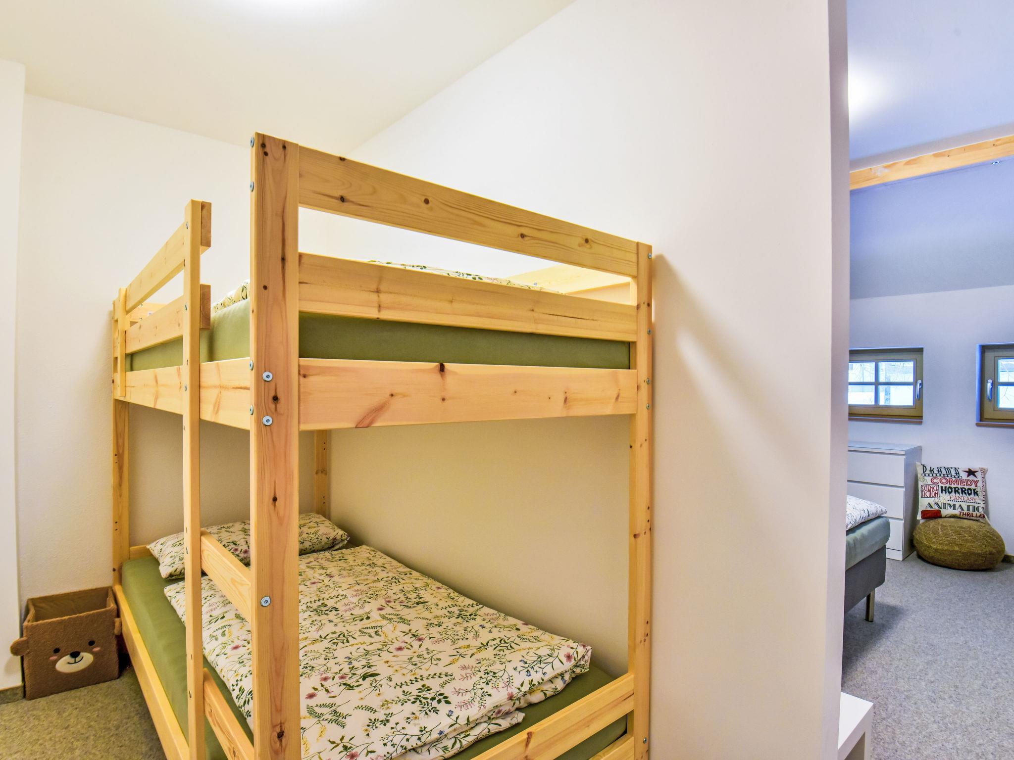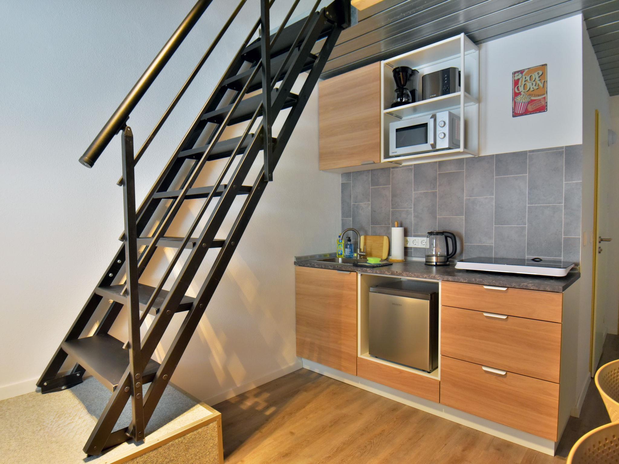 "Clint", 2-room apartment 36 m2 on 2 levels. Fully renovated in 2023, practical and modern furnishings: kitchen-/living room (2 ceramic glass hob hotplates, toaster, kettle, microwave, electric coffee machine) with dining table and satellite TV (flat screen). Shower/WC. Upper floor: with sloping ceilings, 1 large room with 1 x 2 bunk beds (90 cm, length 200 cm), 1 double bed (180 cm, length 200 cm). Heating. Facilities: children's high chair, baby cot. Internet (WiFi, free). Please note: non-smokers only. Maximum 1 pet/ dog allowed. Smoke alarm, fire extinguisher.