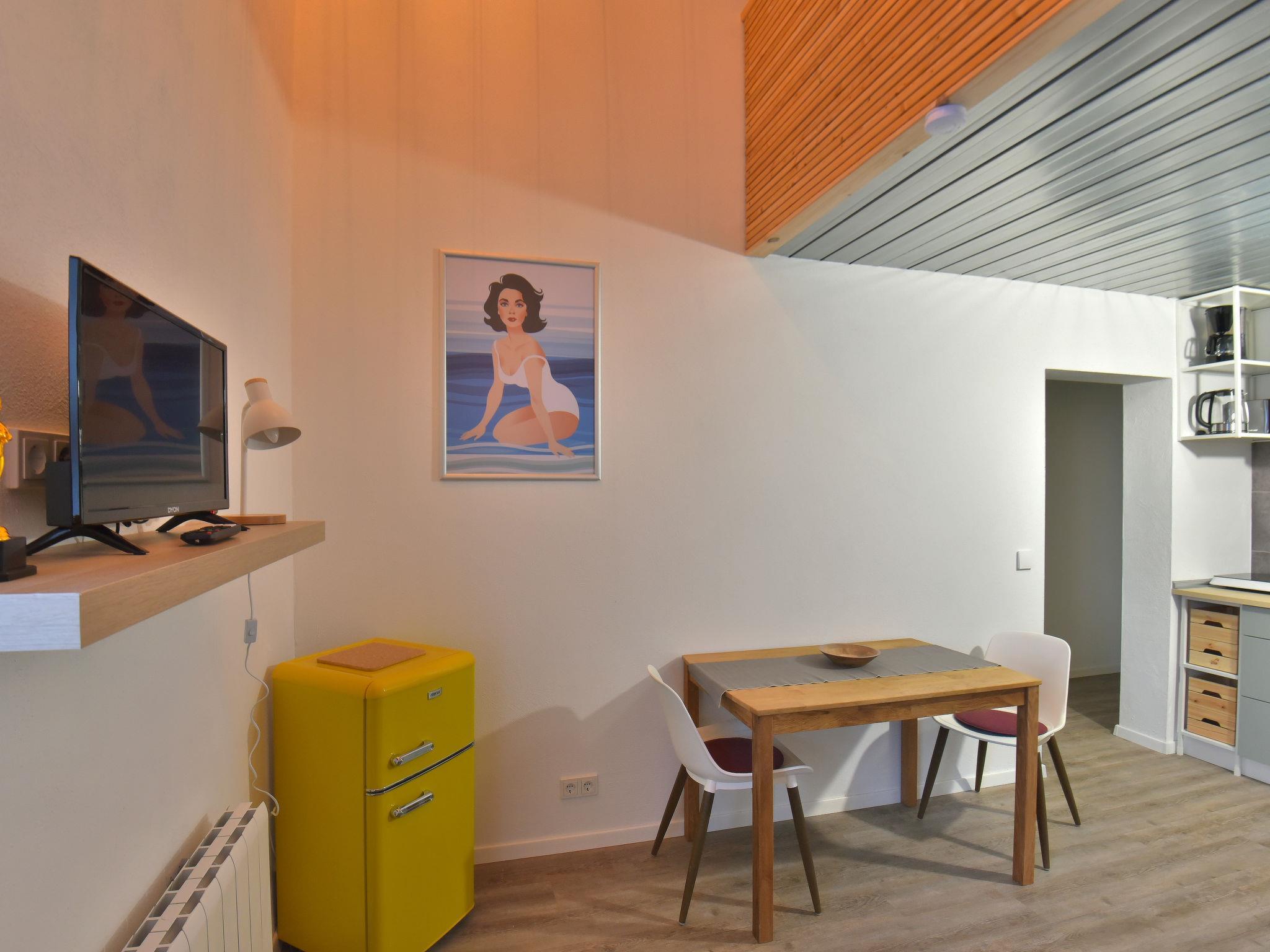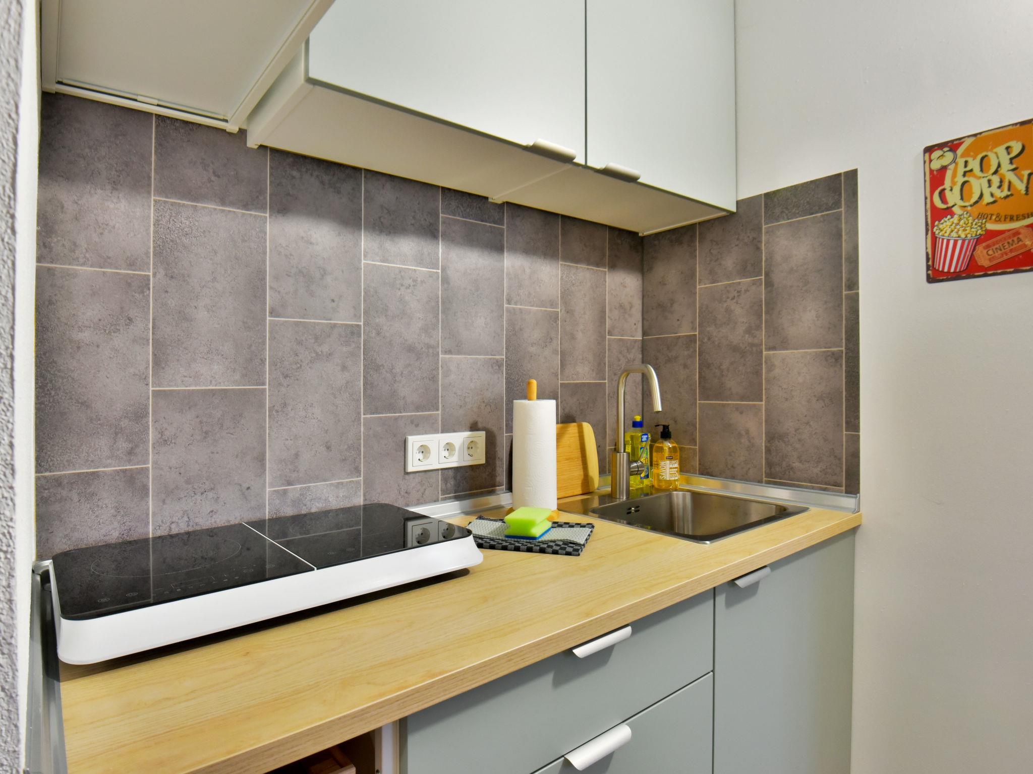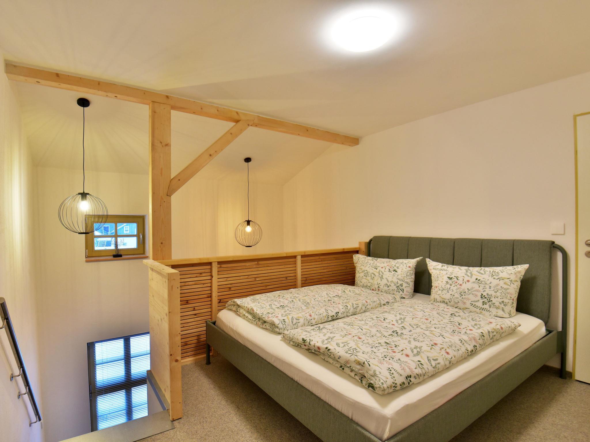 "Liz", 2-room apartment 26 m2 on 2 levels. Fully renovated in 2023, practical and modern furnishings: kitchen-/living room (2 ceramic glass hob hotplates, toaster, kettle, microwave, electric coffee machine) with dining table and satellite TV (flat screen). Shower/WC. Upper floor: with sloping ceilings, 1 large room with 1 double bed (180 cm, length 200 cm). Heating. Facilities: children's high chair, baby cot. Internet (WiFi, free). Please note: non-smokers only. Maximum 1 pet/ dog allowed. Smoke alarm, fire extinguisher.