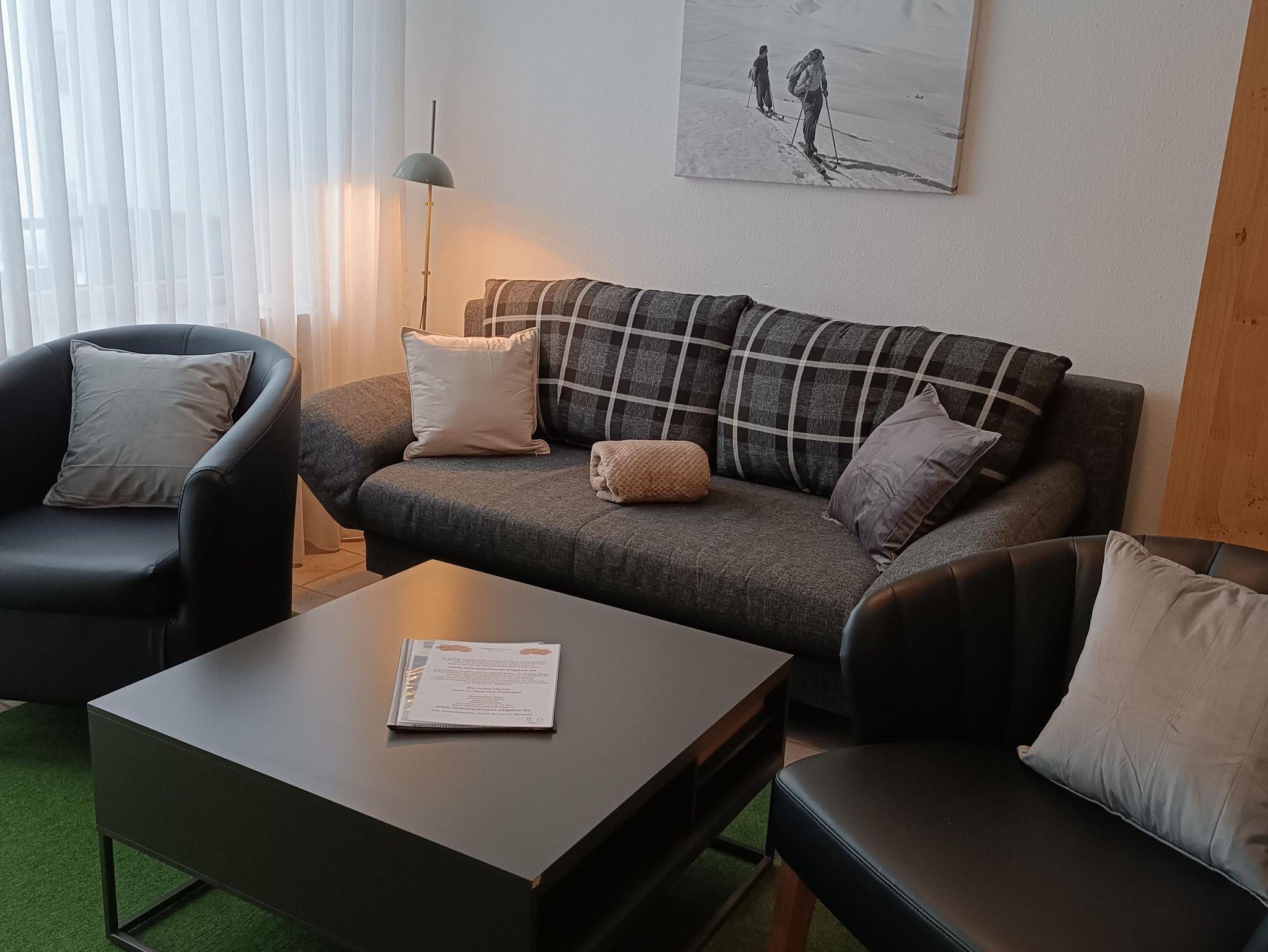 Genießen Sie die Sonne auf dem Südbalkon dieser hübschen Zwei-Zimmer-Wohnung. Wohnzimmer mit Kochnische mit Spülmaschine und Schlafgelegenheit für 2 Personen (Schrankbetten), separates kleines Schlafzimmer mit 2 Einzelbetten sowie Dusche/WC.
