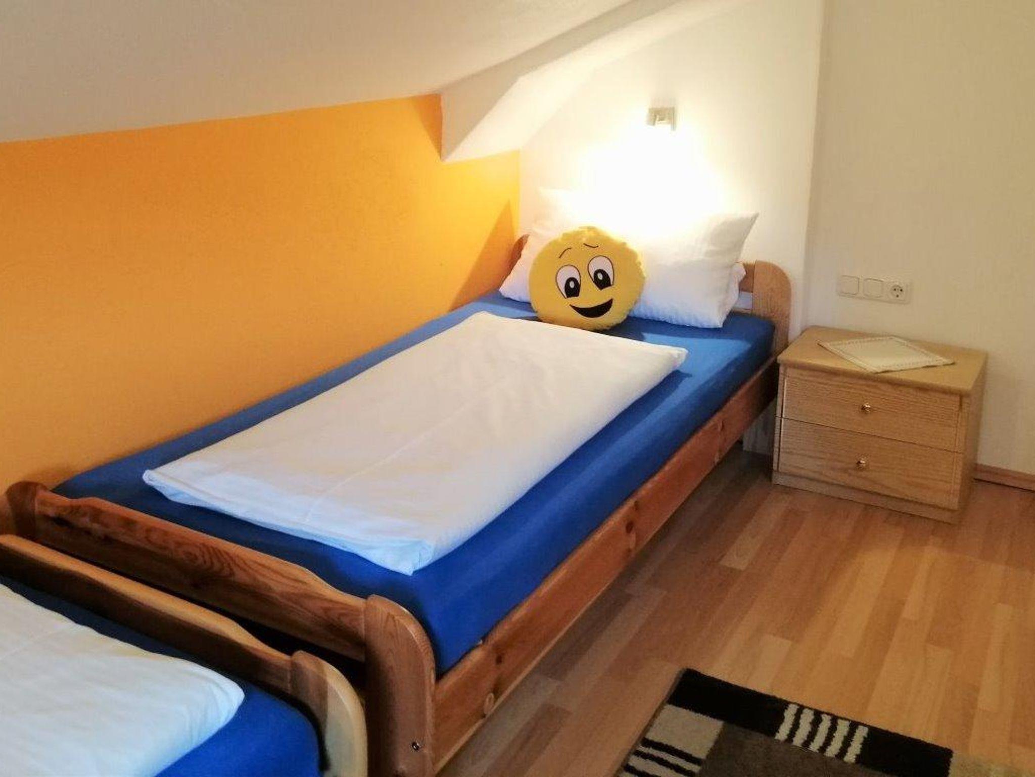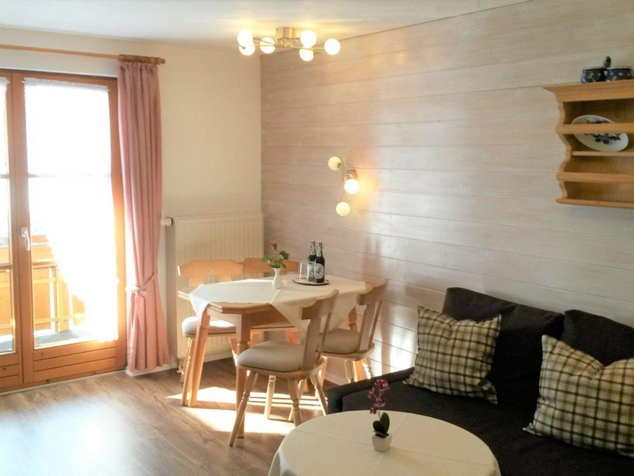Sie verfügt über zwei getrennte Schlafzimmer: ein Elternschlafzimmer mit Doppelbett und ein angeschlossenes Kinderschlafzimmer mit zwei Einzelbetten. Zusätzlich gibt es im Wohnraum eine Couchgarnitur und eine integrierte Küchenzeile. Die Ausstattung umfasst einen Sat-Flachbildschirm, ein Badezimmer mit Dusche/WC, Waschbecken und Fön sowie zwei Balkone (West- und Südbalkon) mit Blick auf die Allgäuer Alpen.