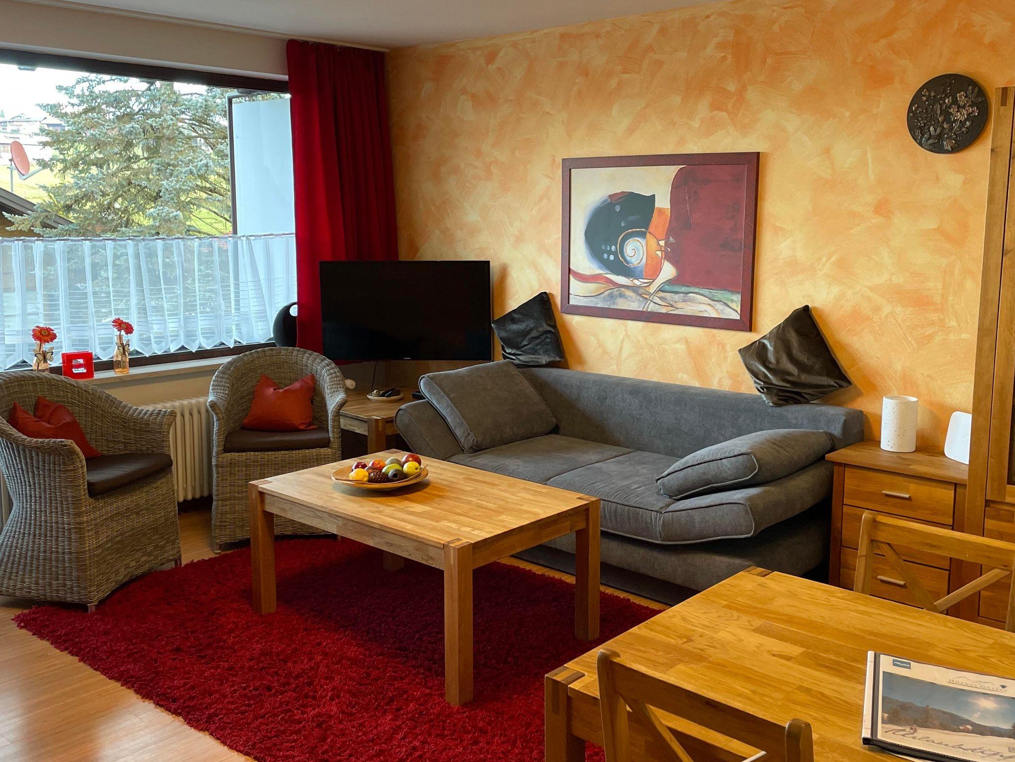 Hübsche, ruhig gelegene und neu renovierte Ferienwohnung mit 35 m2 Wohnfläche, geräumiges Bad mit Badewanne, separate Küche mit Backofen und allem was man braucht. Schöne Aussicht ins Dorf und die Berge. Hallenbadbenutzung kostenlos(5*11m Wasserfläche, 28°) Bus ins Skigebiet und in die Berge kostenlos Sauna und Ruheraum, Ski- und Fahrradkeller Waschraum mit Waschmaschine und Trockner