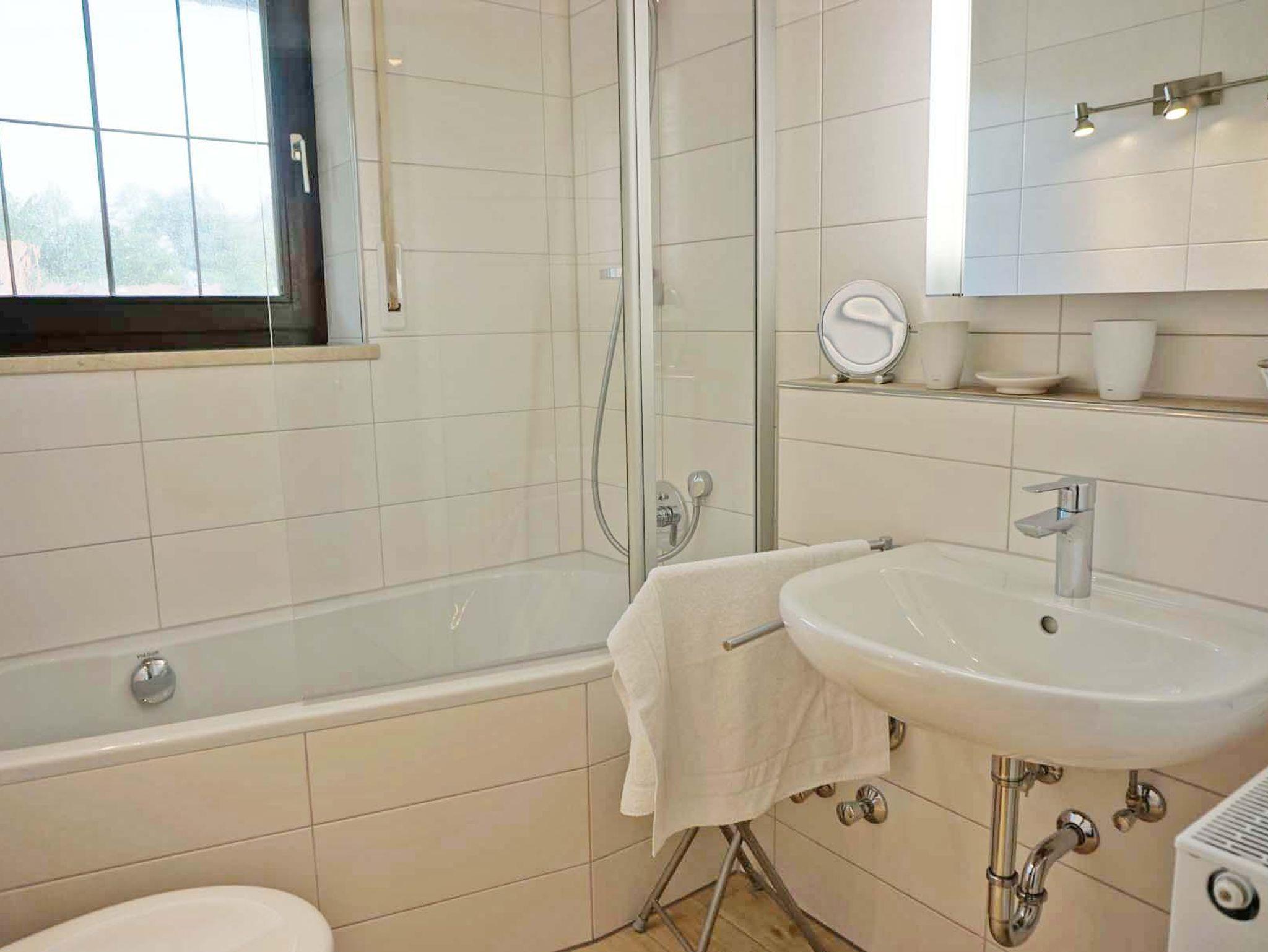 Das Bad ist mit Wanne und WC ausgestattet.