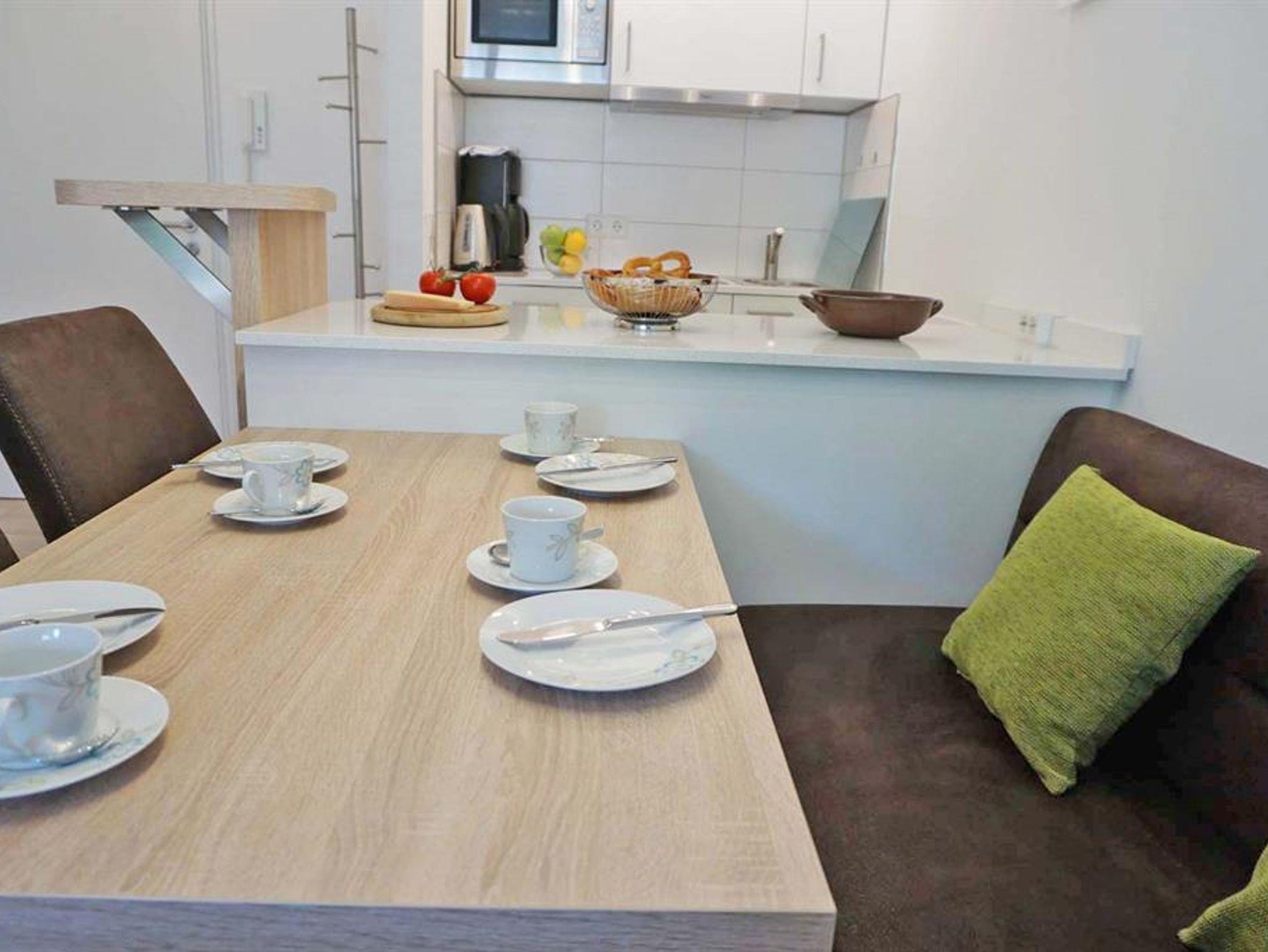 Sie bietet Ihnen ein Wohnzimmer mit großem Balkon, offener Küche mit Essplatz, sowie ein separates Schlafzimmer mit Doppelbett.
