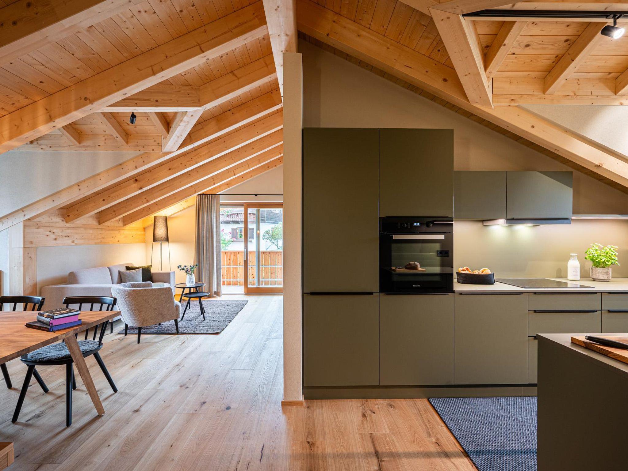 Der sichtbare Dachstuhl und die großzügigen Dachgauben lassen viel Licht hinein.