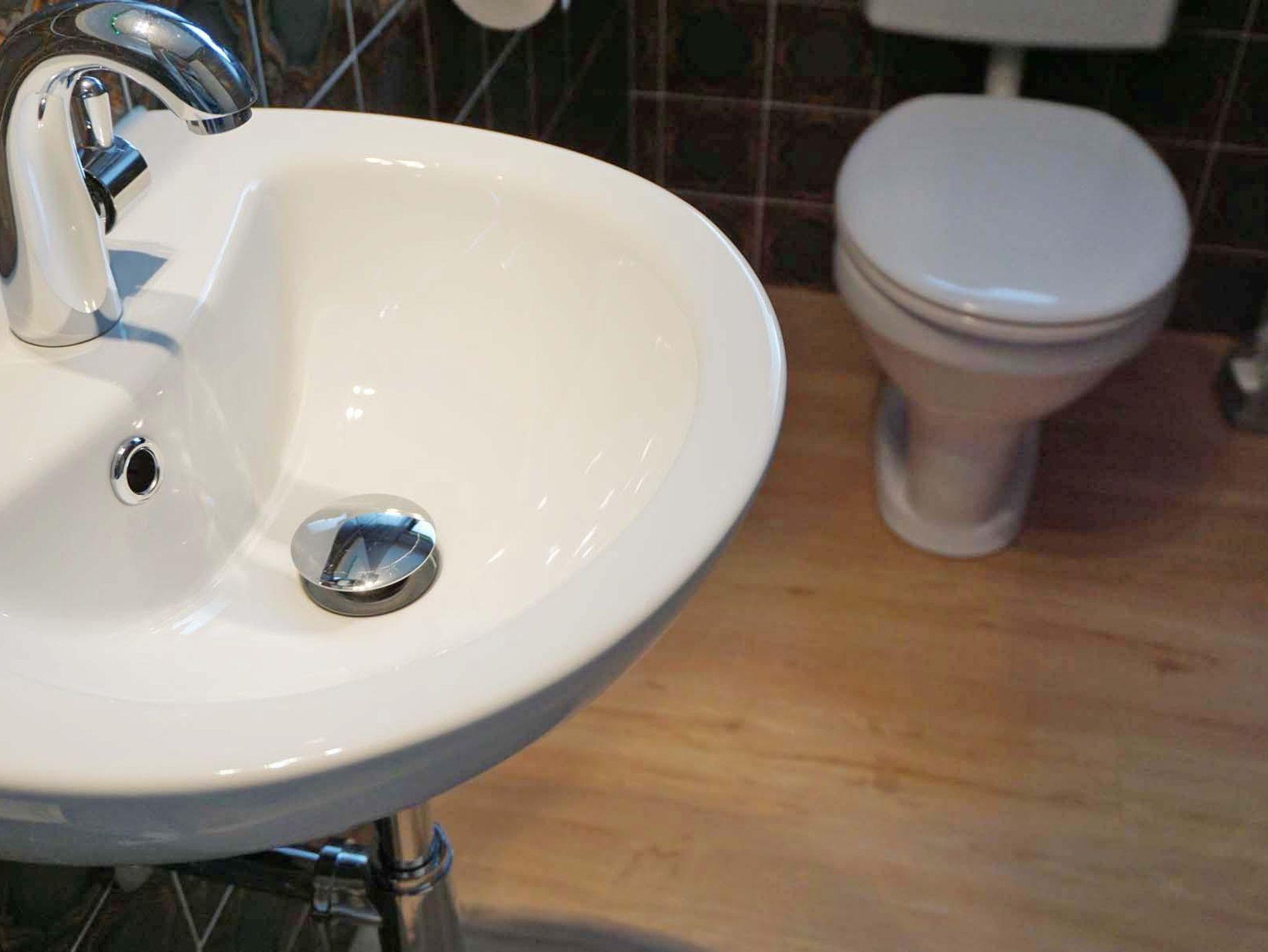 Waschraum mit Waschmaschine und Trockner (gegen Gebühr).
