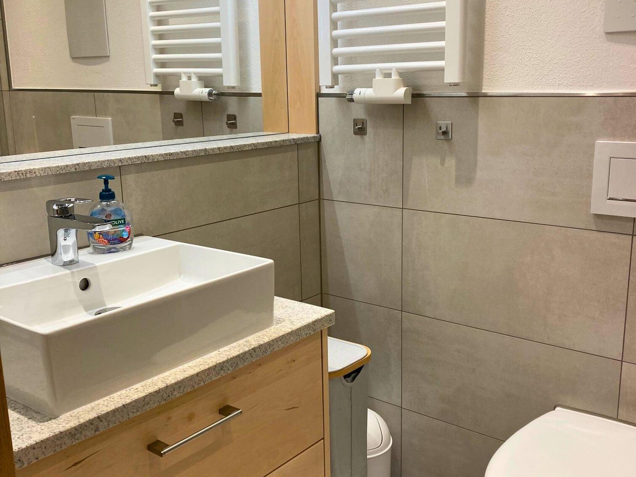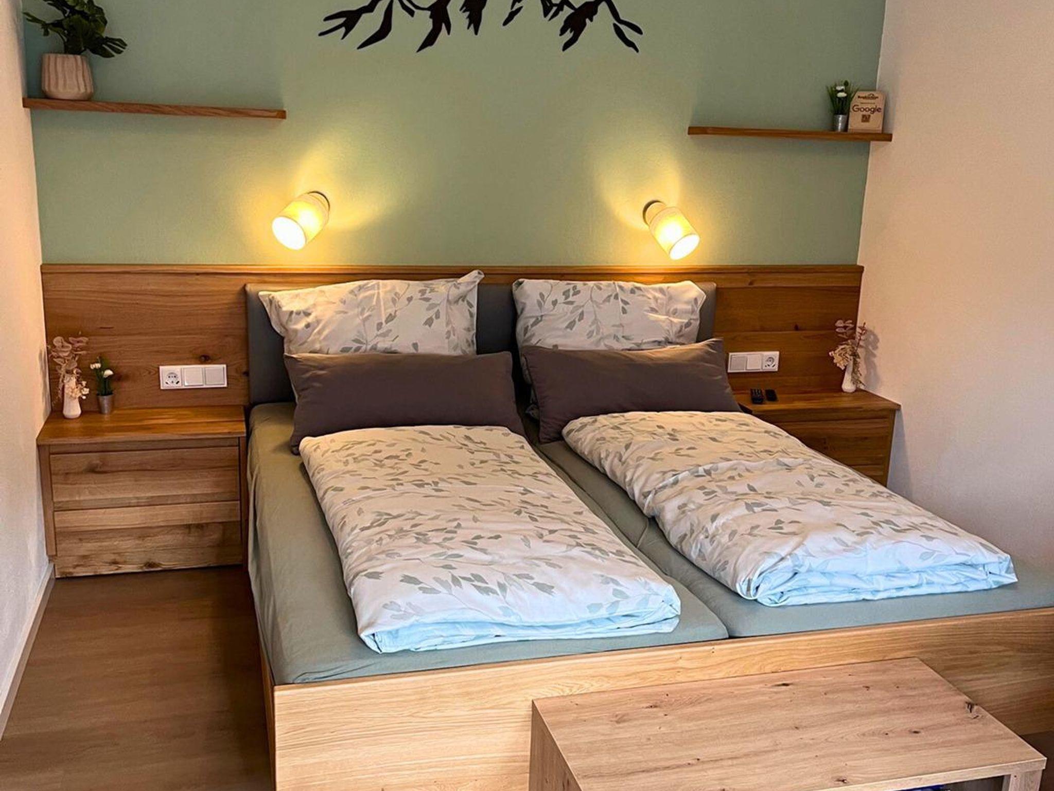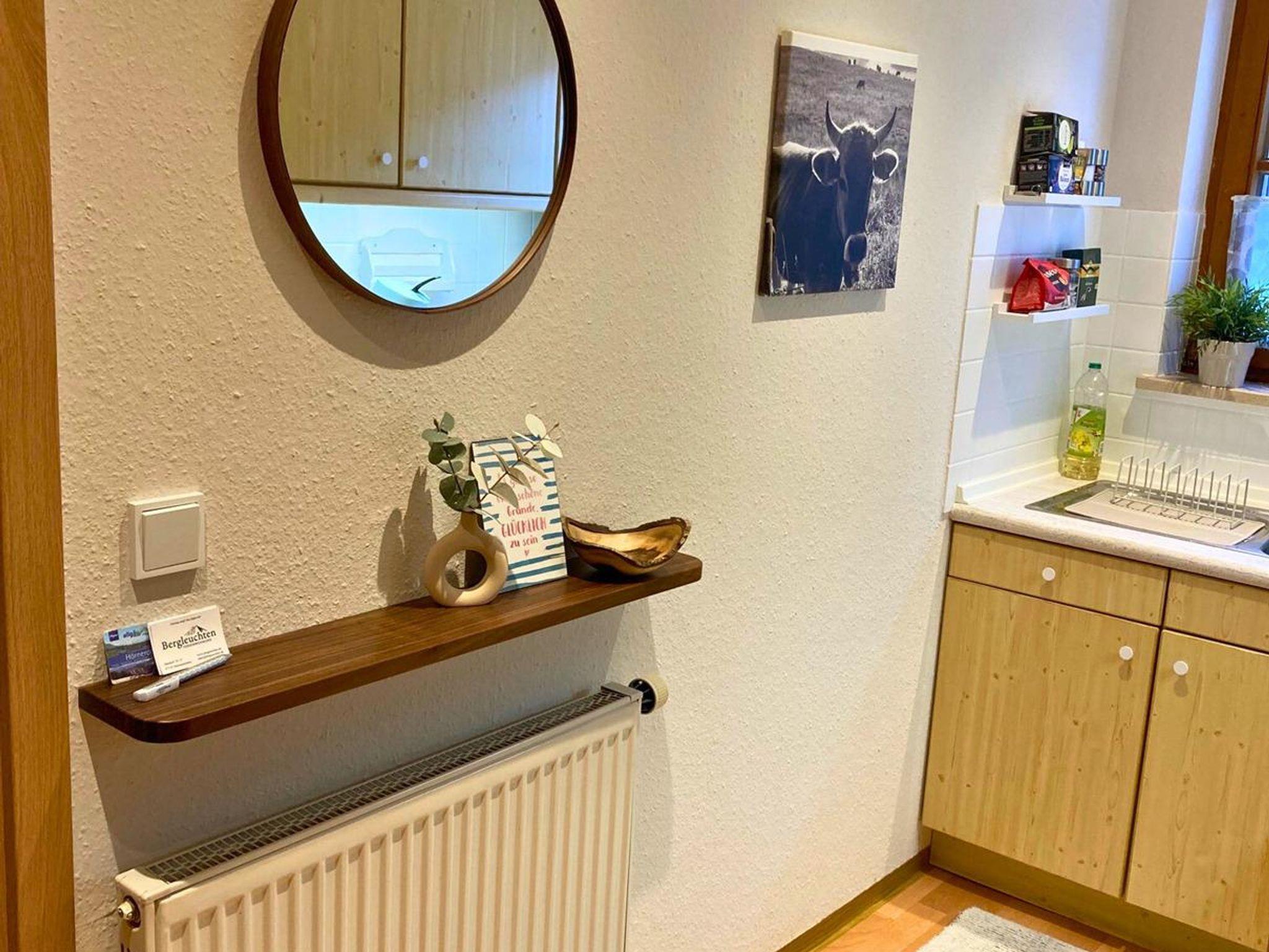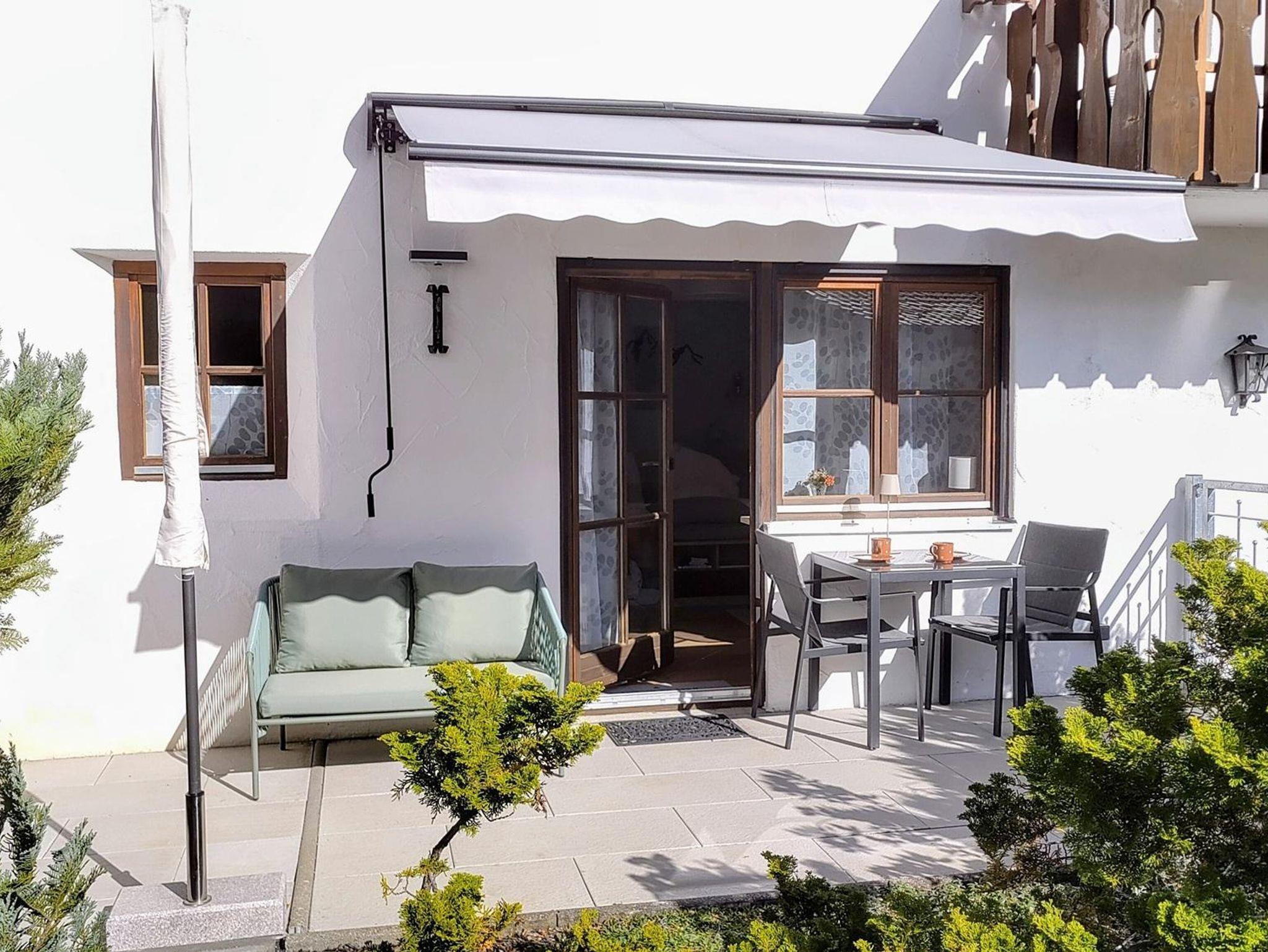 Unsere Ferienwohnung bietet neben einem kleinen Bad (mit Dusche und WC) auch eine seperate, gut ausgestattete Küche, in der Lieblingsspeisen zubereitet werden können. Daneben befindet sich ein kombinierter Schlaf-Wohnbereich (feststehende Betten 180x200) mit großzügiger Essecke und einem geräumigen Schrank. Hier gelangen Sie auch auf Ihre eigene Terrasse mit Sonnenschirm, Sitz- und Liegemöglichkeit, um die frische Bergluft in vollen Zügen zu genießen. Kostenloses WLAN ist vorhanden.