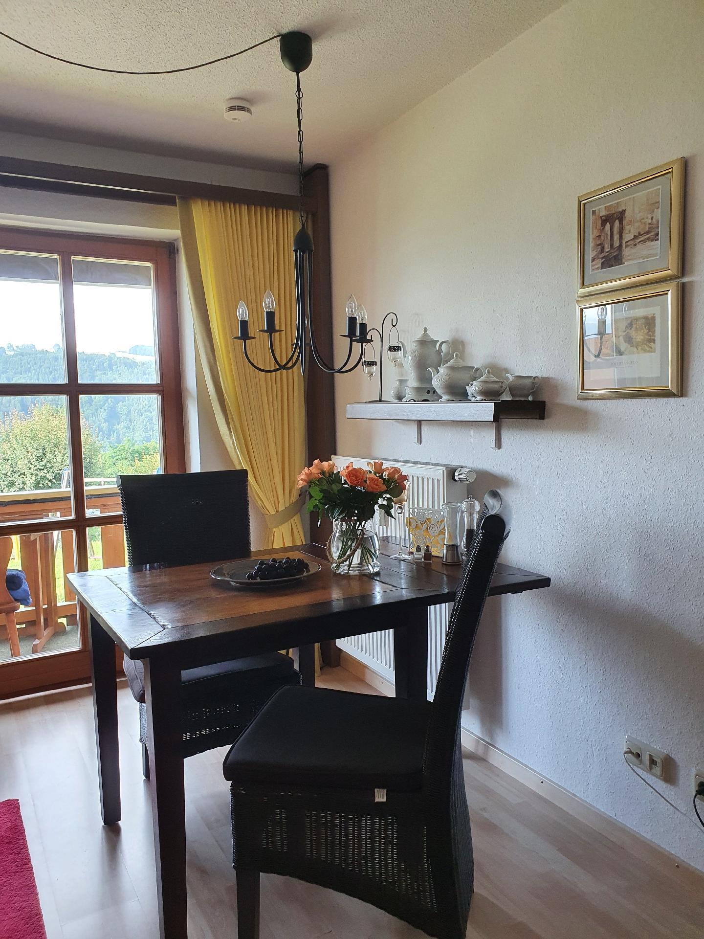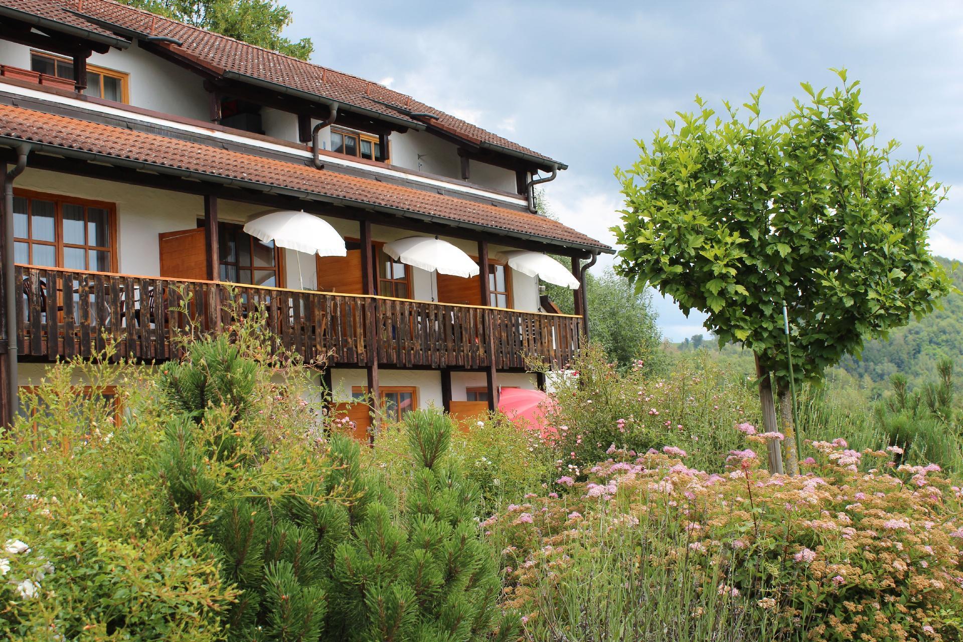 We rent out a very well-kept, Bavarian-style holiday flat with balcony, fitted kitchen, bright shower room and living room/bedroom. The view leads directly to the Danube and the Austrian mountains opposite. A car park is available. There is a small children's playground on the property.