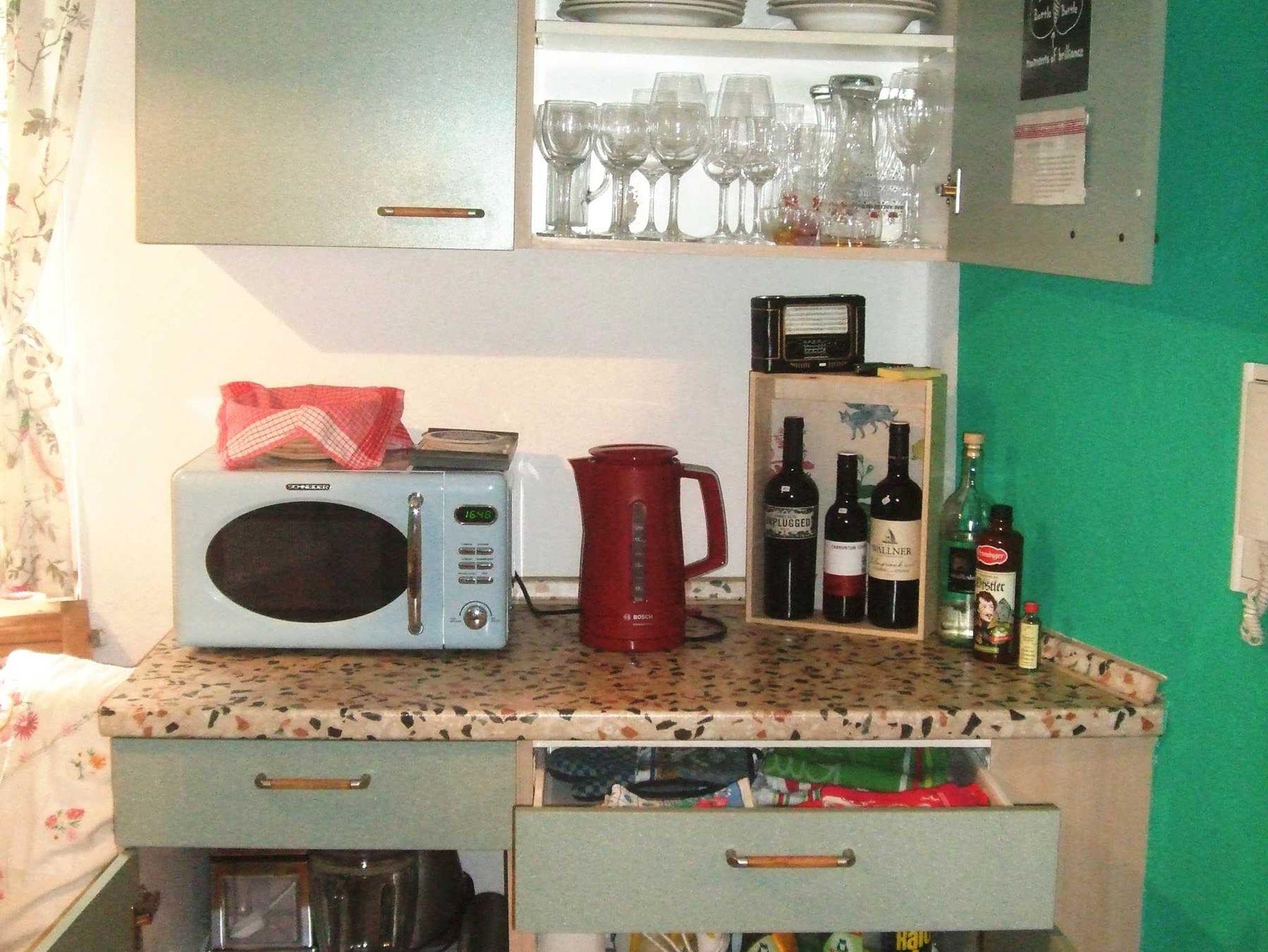 Backofen, Herd, Kühlschrank, Kaffeemaschine, Wasserkocher, Radio und sämtlichen