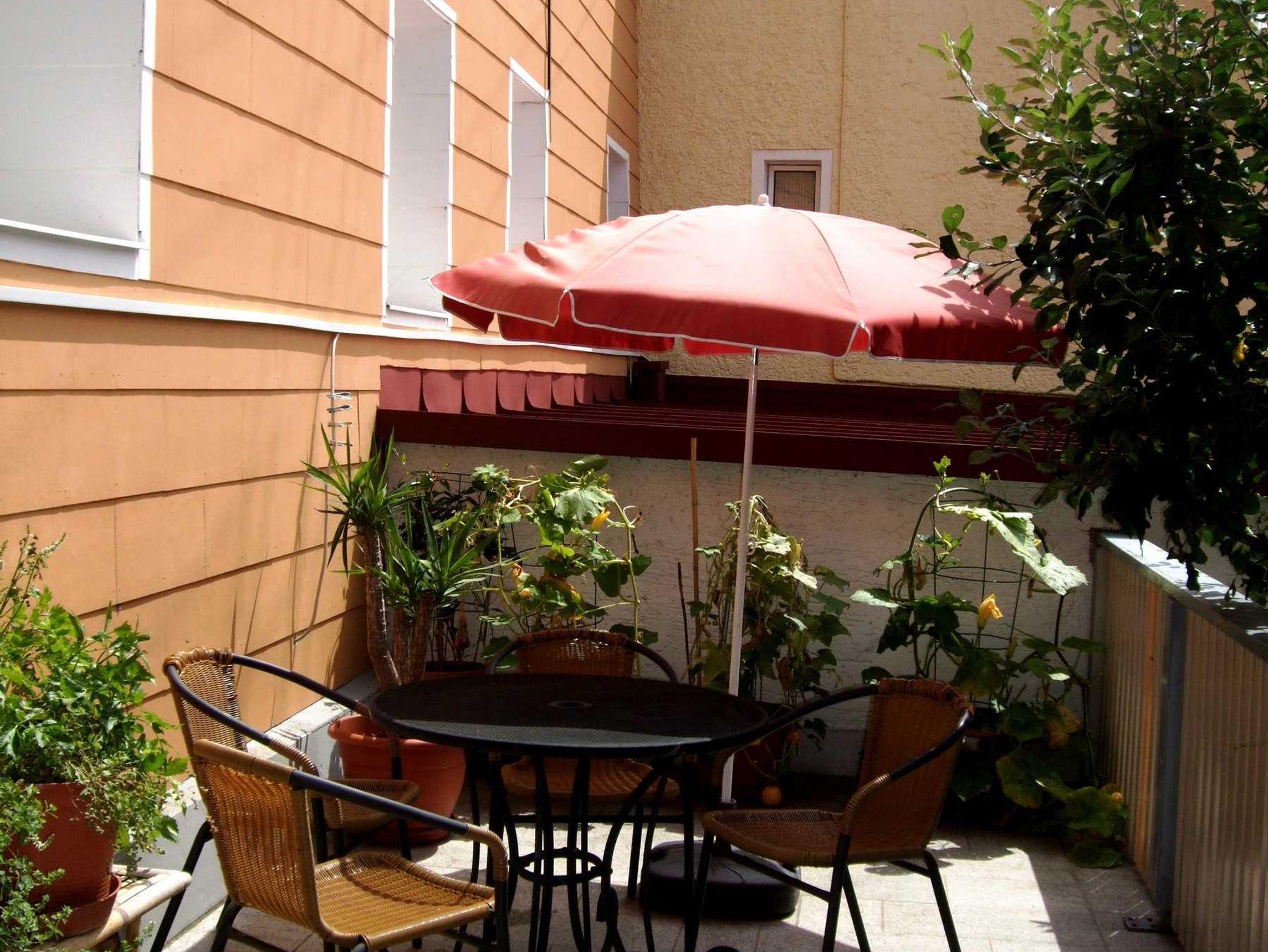 Sitzgelegenheit, Sonnenschirm und Sonnenliegen, Garage für Fahrräder und