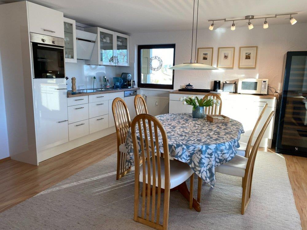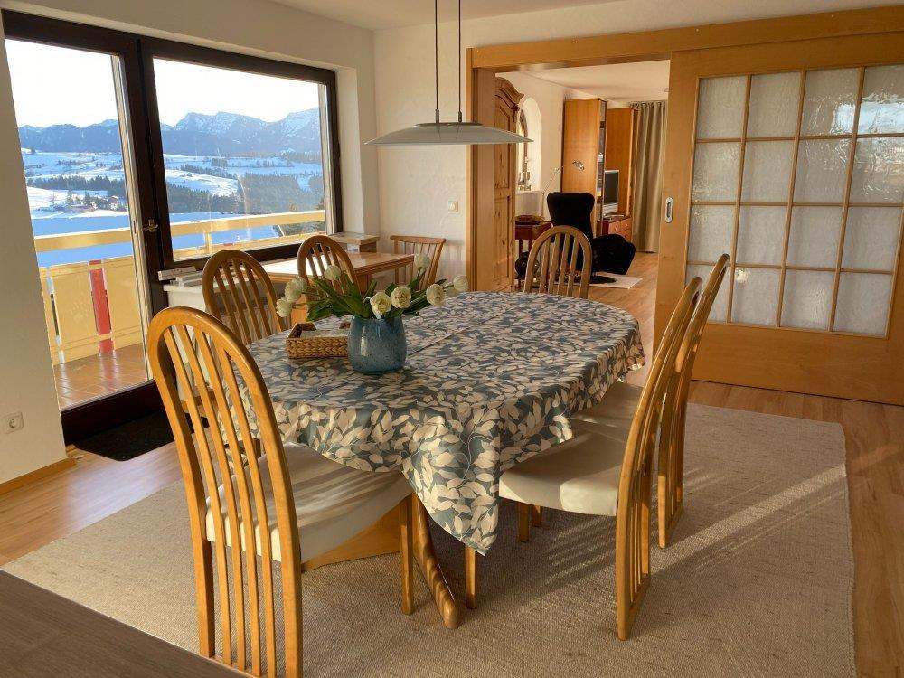 Die gesamte, neu renovierte Wohnung ist an drei Seiten von einem umlaufenden Balkon umgeben, der von Küche, Wohnzimmer und Schlafzimmer zugänglich ist und einen fantastischen Blick auf das Bergpanorama bietet. Beide Schlafzimmer verfügen über Doppelbetten (1x 180*200cm und 1x200*200cm) mit Einzelmatratzen, ein Babybett kann optional genutzt werden. In den beiden zugehörigen Badezimmern befinden sich Dusche, WC und Waschbecken sowie eine Waschmaschine. Auch die geräumige, moderne Küche erlaubt den weiten Blick ins Westallgäu. Sie ist komplett ausgestattet und ermöglicht Beisammensein in gemütlicher Ess- oder Spielerunde inklusive Hochstuhl und Kinderstuhlerhöhung für die Kleinen. In dem großen, nach Süden ausgerichteten Wohnzimmer befinden sich die Sitzgarnitur mit Schlafsofa (150cmX200cm), Smart-TV mit Soundbar, ein gemütlicher Ruhesessel, der Schwedenkamin sowie eine umfangreiche Sammlung von (Kinder-) Spielen und Büchern. Zu unserer Ferienwohnung in der 2. Etage (ohne Aufzug) gehört ein kostenloser Stellplatz, der im Winter geräumt wird. Auf Anfrage ist ein zusätzlicher Stellplatz verfügbar. Wir haben unsere eigene jahrzehntelange Erfahrung mit Ferienwohnungen nun im Falkennest eingebracht und wünschen unseren Gästen einen unvergesslichen Aufenthalt im wunderschönen Westallgäu.