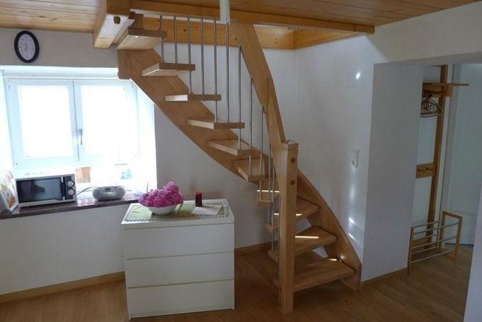 Im Erdgeschoss befindet sich die sehr gut ausgestattete Wohnküche. Hier haben Sie genug Platz, um sich beim Kochen zu entfalten. Die Küche ist unter anderem mit einem Elektroherd mit Backofen, einer Mikrowelle, einer Geschirrspülmaschine und natürlich mit einer Kaffeemaschine und einem Toaster eingerichtet.
