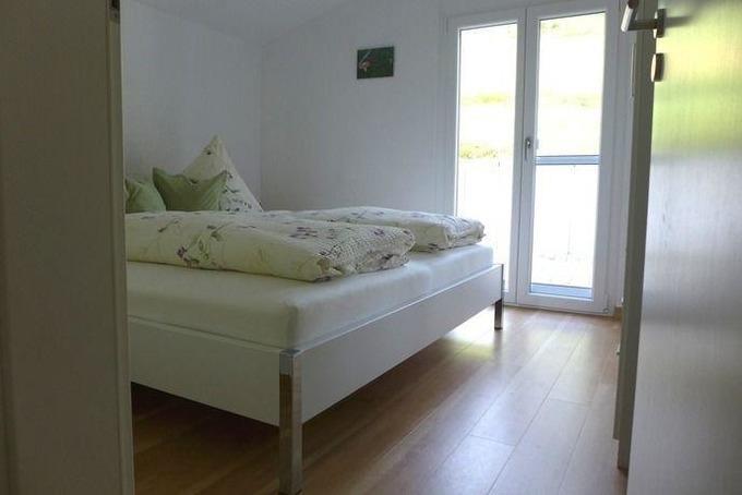 Auch das helle und einladende Schlafzimmer befindet sich im Erdgeschoss, hier erwartet Sie ein gemütliches Doppelbett (1,80m) und ein geräumiger Kleiderschrank.