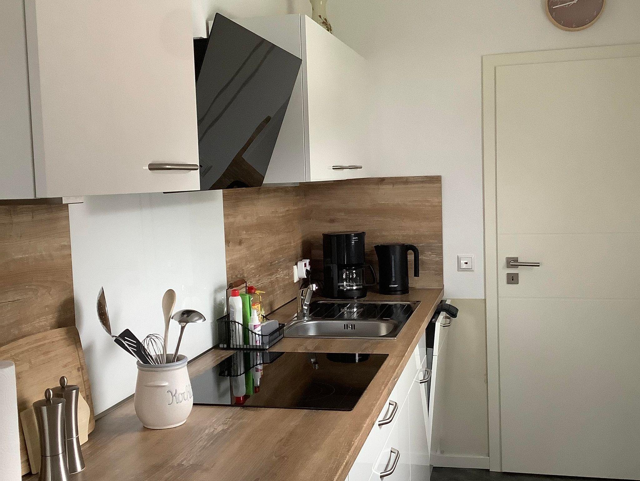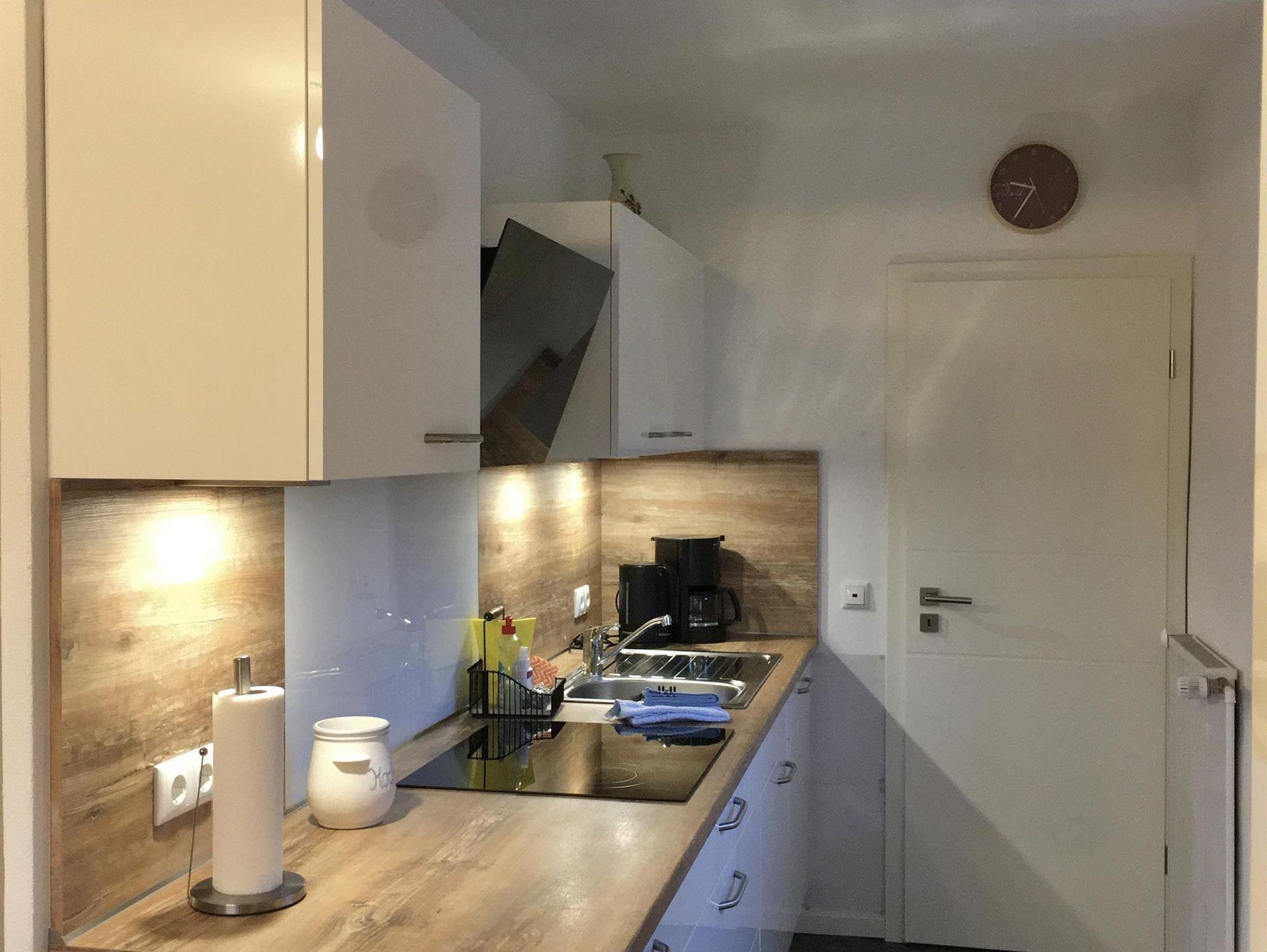Die Wohnung verfügt über ein schönes Wohnzimmer mit Flachbild-TV, Stereoanlage und einer gemütlichen Sitzecke / Schlafcouch. Im Schlafzimmer steht ein Doppelbett, sowie ein großer Schrank mit vielen Staumöglichkeiten. Die neue Einbauküche verfügt über ein Cerankochfeld, Hochbackofen, Spülmaschine, große Kühl-Gefrierkombination, ein Esstisch mit vier Stühlen und im anschließenden, separten Spind steht eine Mikrowelle. Das Badezimmer ist mit einer ebenerdigen Dusche ausgestattet. Bettwäsche, Handtücher und Küchentücher sind im Preis enthalten.