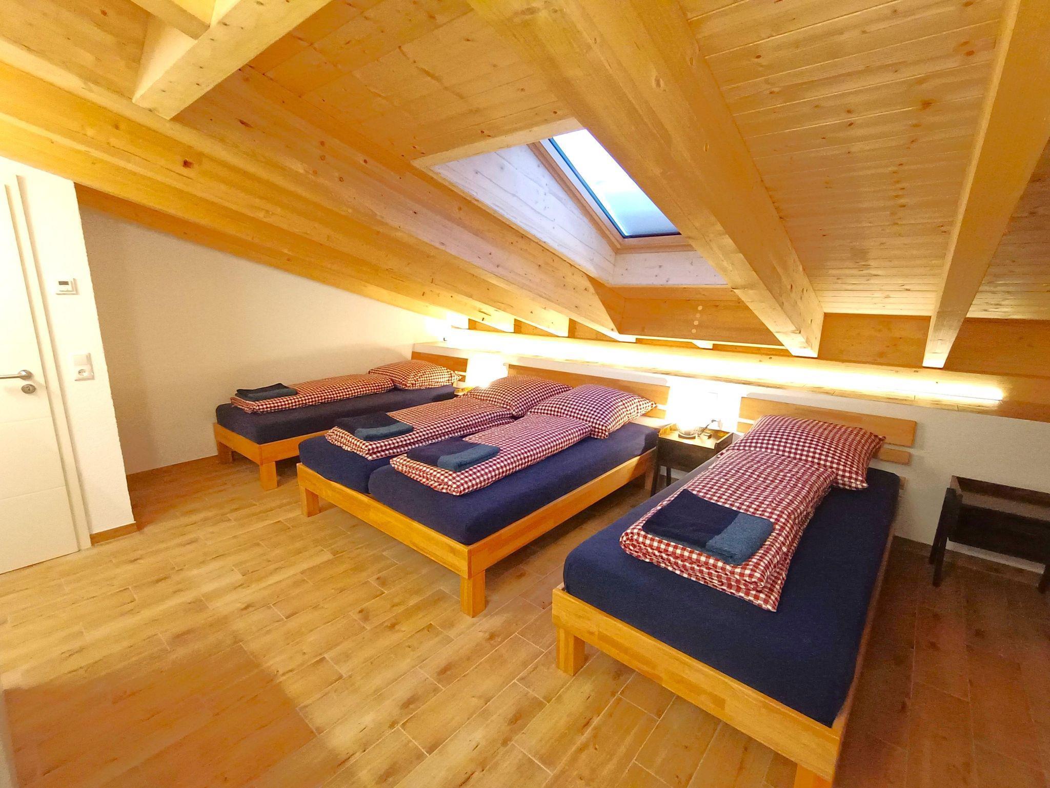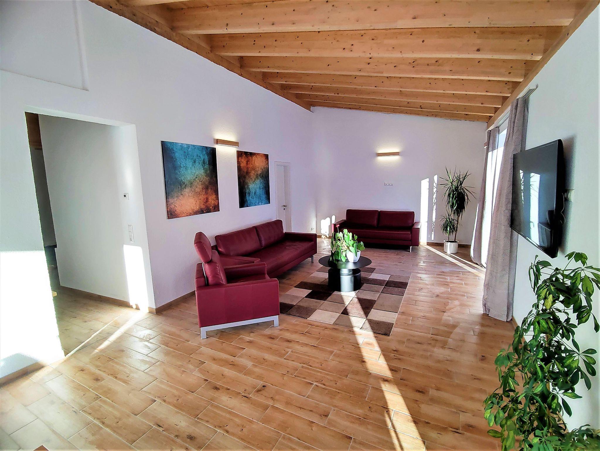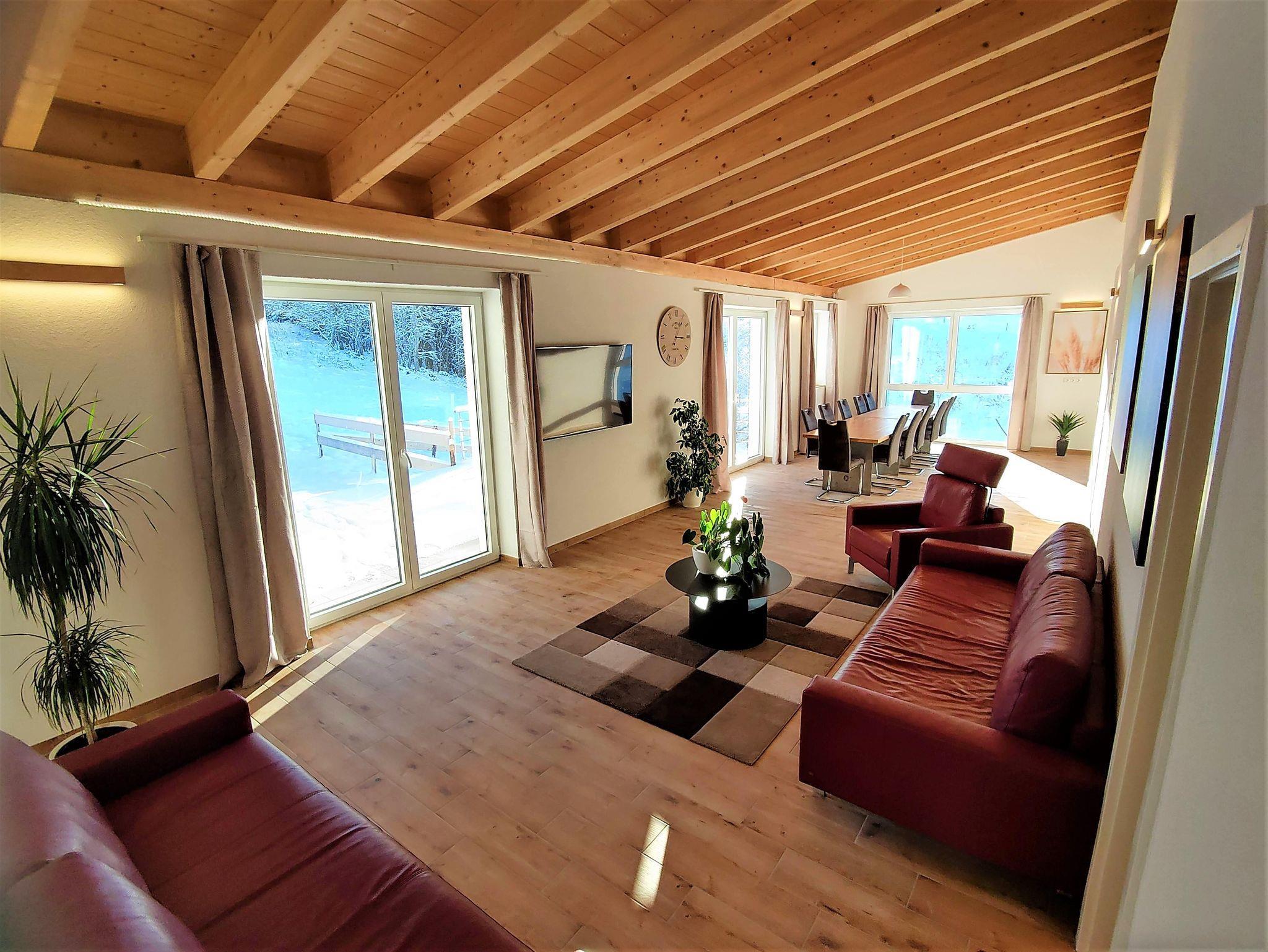 Die Wohnung ist für bis zu 11 Personen ausgelegt und mit einem XXL Wohn/Essbereich zum Wohlfühlen ausgestattet. Von hier aus gelangen Sie auf die sonnige Südterrasse am Lifteinstieg und an den Wiesen. Desweiteren stehen Ihnen 3 Schlafzimmer zur verfügung (SZ1 Doppelbett und zwei Einzelbett,SZ2 drei Einzelbetten,SZ3 Doppelbett und zwei Einzelbett), 2 Bäder mit ebenerdiger Dusche und Gäste WC, Fußbodenheizung, Smart TV 60 Zoll..