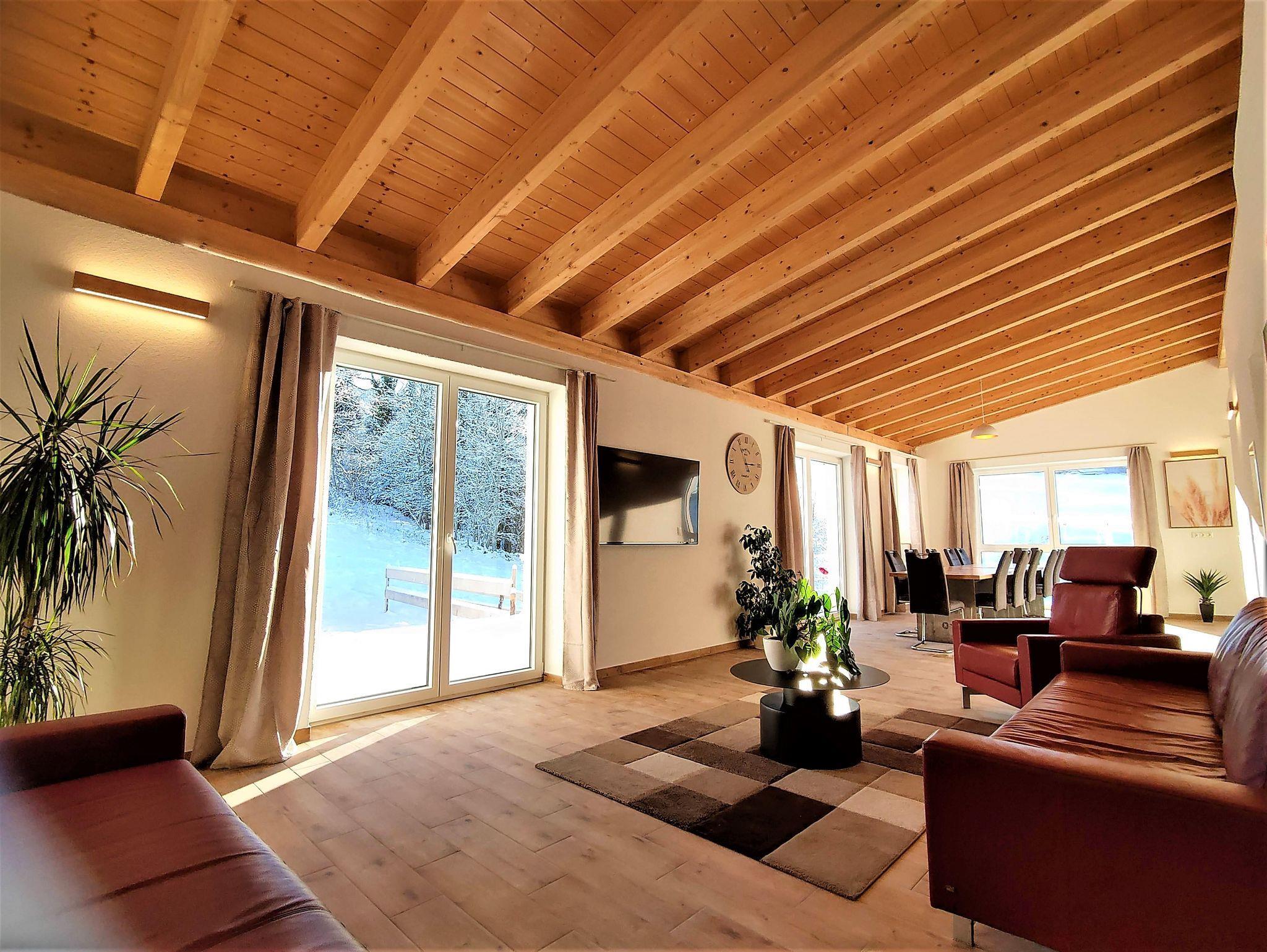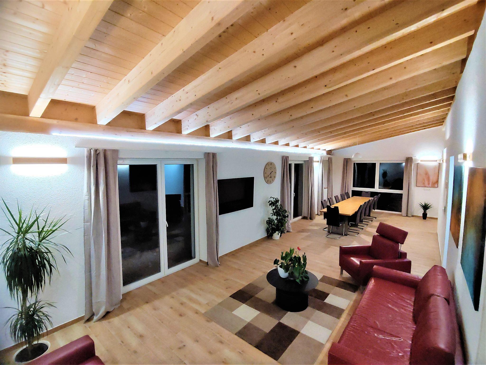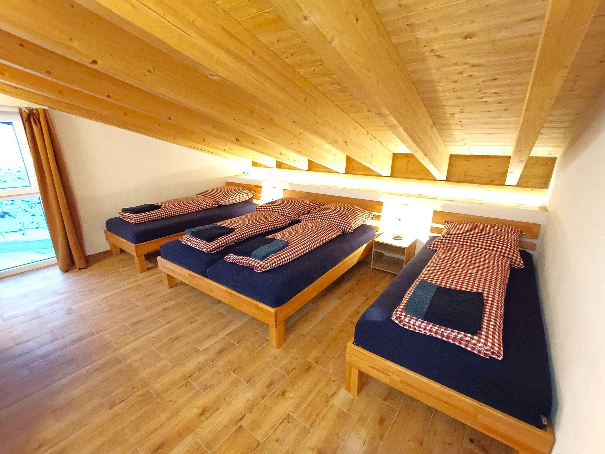 Die Wohnung ist für bis zu 11 Personen ausgelegt und mit einem XXL Wohn/Essbereich zum Wohlfühlen ausgestattet. Von hier aus gelangen Sie auf die sonnige Südterrasse am Lifteinstieg und an den Wiesen. Desweiteren stehen Ihnen 3 Schlafzimmer zur verfügung (SZ1 Doppelbett und zwei Einzelbett,SZ2 drei Einzelbetten,SZ3 Doppelbett und zwei Einzelbett), 2 Bäder mit ebenerdiger Dusche und Gäste WC, Fußbodenheizung, Smart TV 60 Zoll..