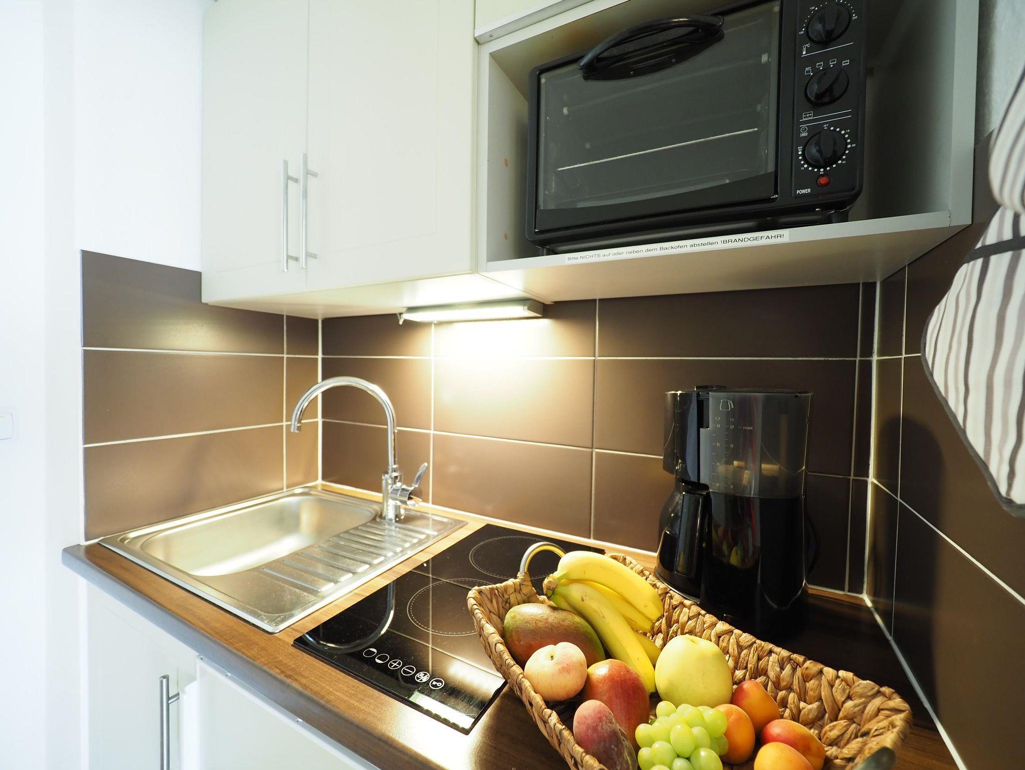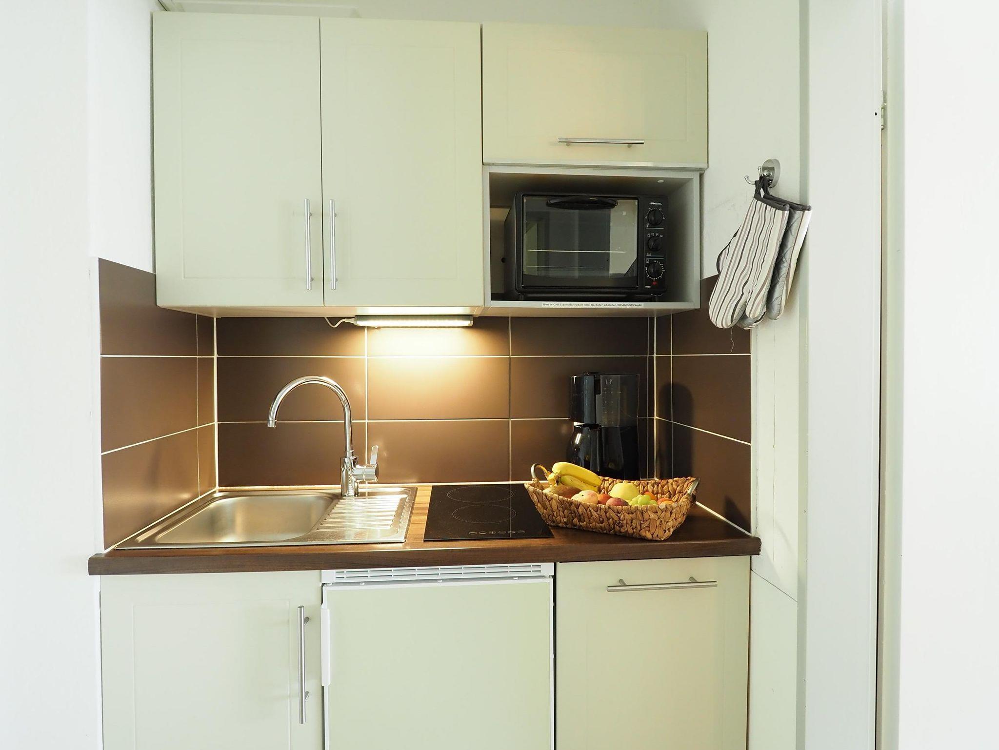 Freuen Sie sich auf eine gut ausgestattete Küche mit Spülmaschine, Kaffemaschine und kleinem Backofen. Genießen Sie die Aussicht bequem vom Sofa aus oder noch besser vom überdachten Südbalkon.