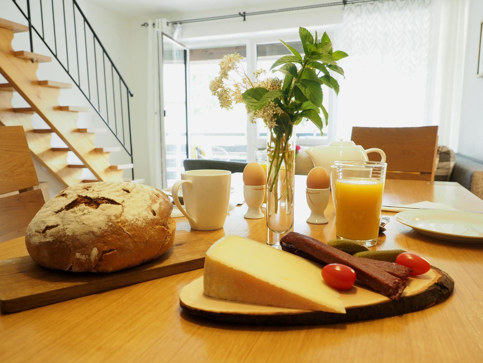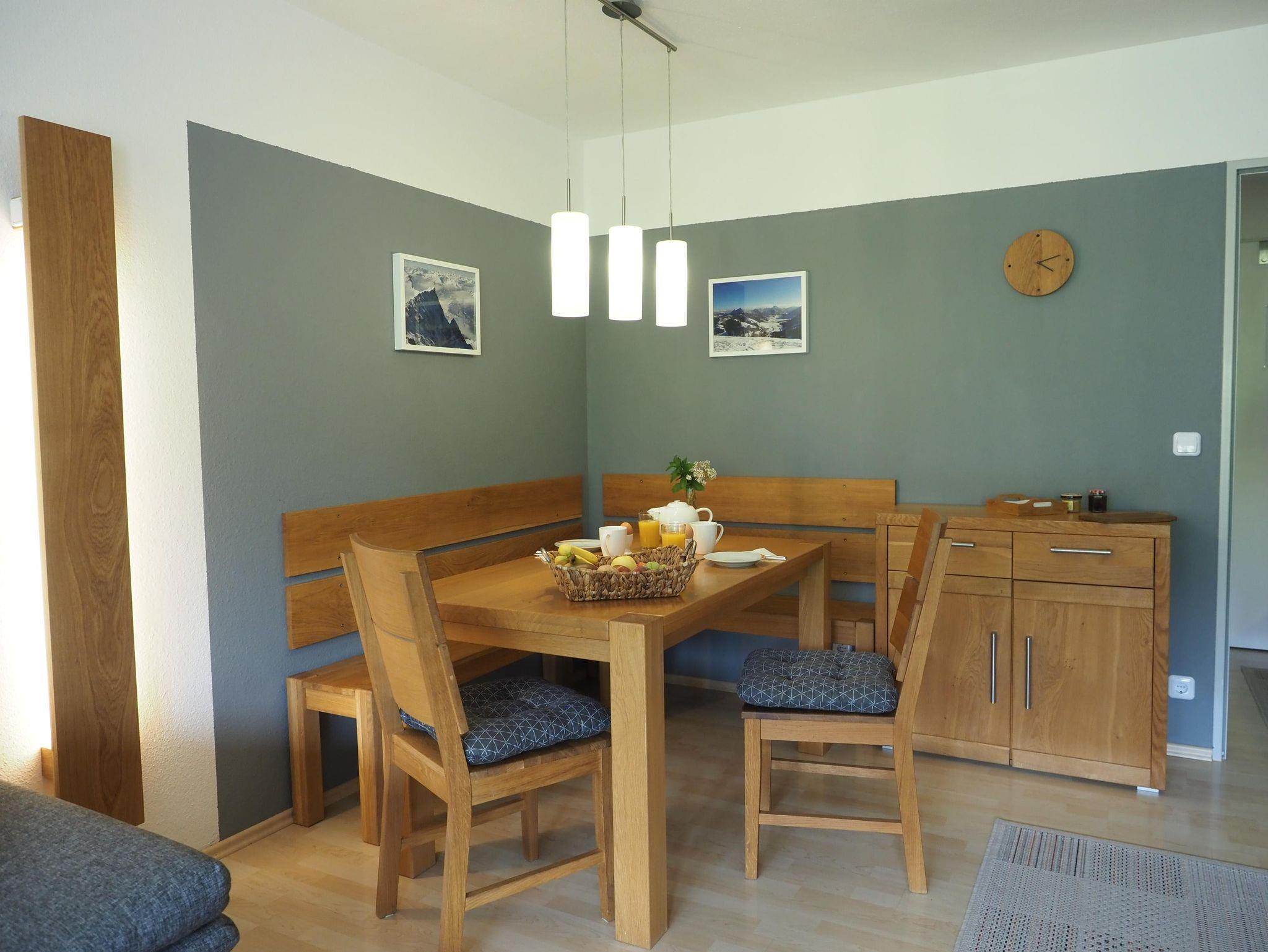 Unsere renovierte Maisonettewohnung im 1. Stock mit Südbalkon und wunderschönem Bergblick auf Hochgrat und Imberg ist hochwertig und geschmackvoll eingerichtet.