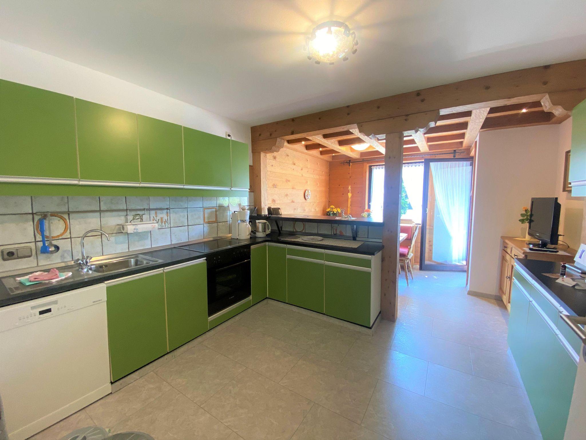 Küche komplett mit Cerankochfeld, Spülmaschine, Mikrowelle usw. ausgestattet. Gemütliche Eckbank mit Tischgarnitur.