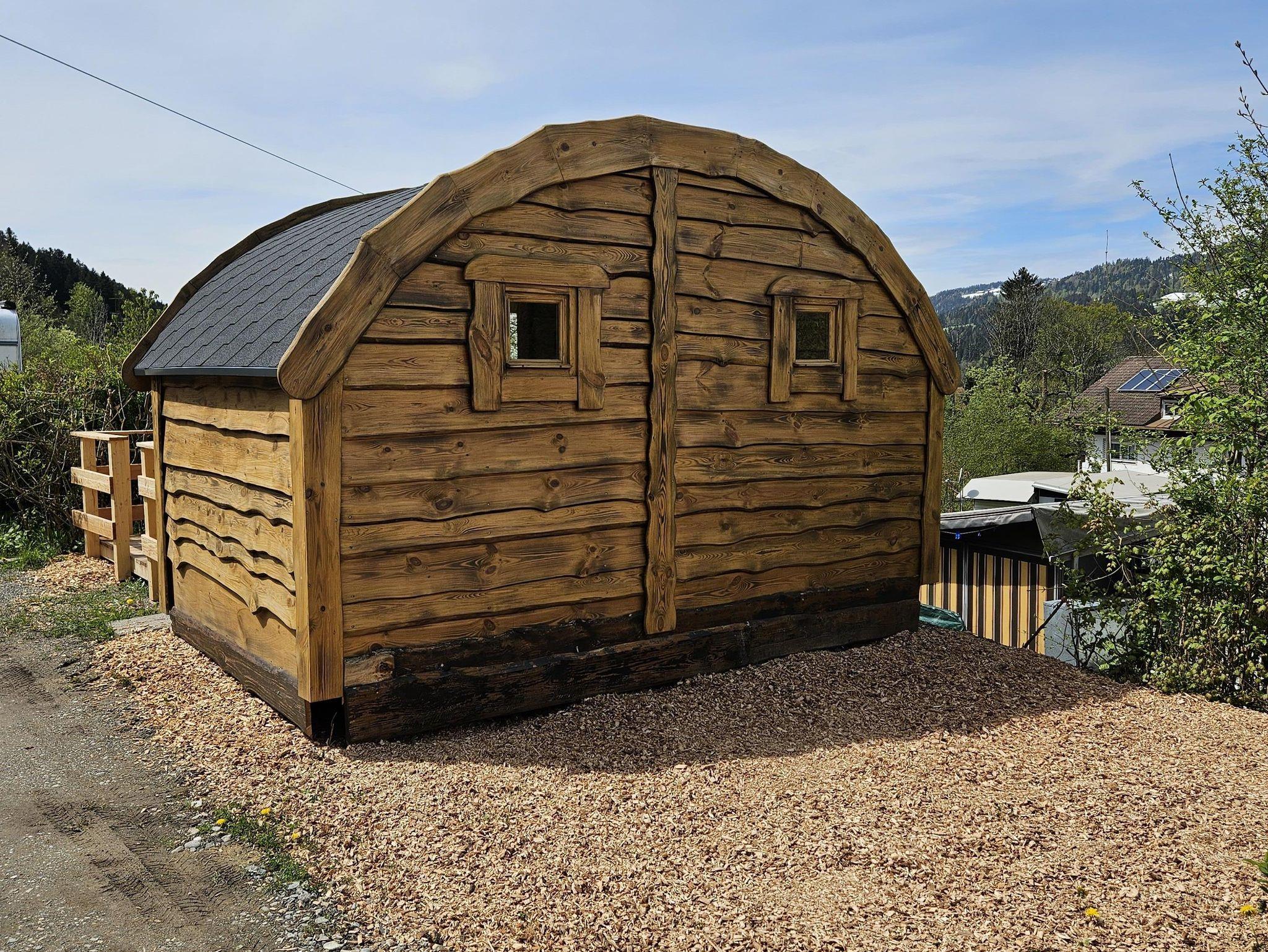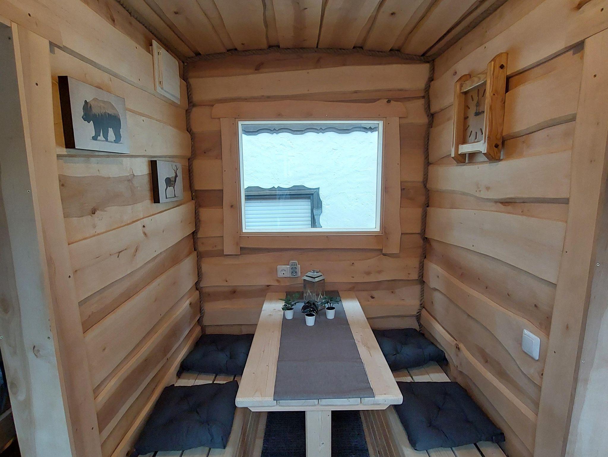 Unsere Schlafhöhle Traudi bietet bequem Platz für bis zu 2 Personen mit einem Schlafbereichen und einem separaten Essbereich.