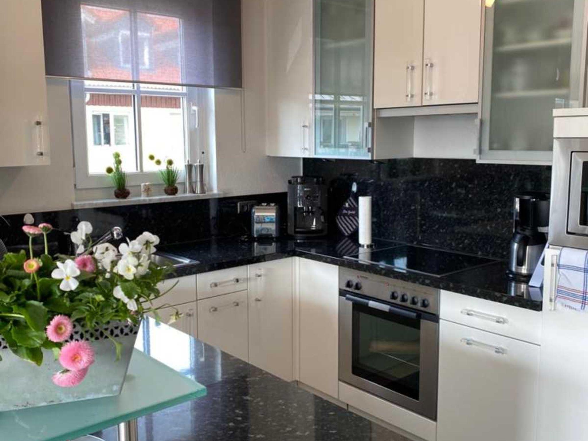 • komplett eingerichtete moderne Einbauküche mit Geschirrspüler,.Glaskeramikkochfeld, Backofen, Mikrowelle, Kühlschrank, Toaster, Eierkocher, Kaffeemaschine, Wasserkocher, usw.