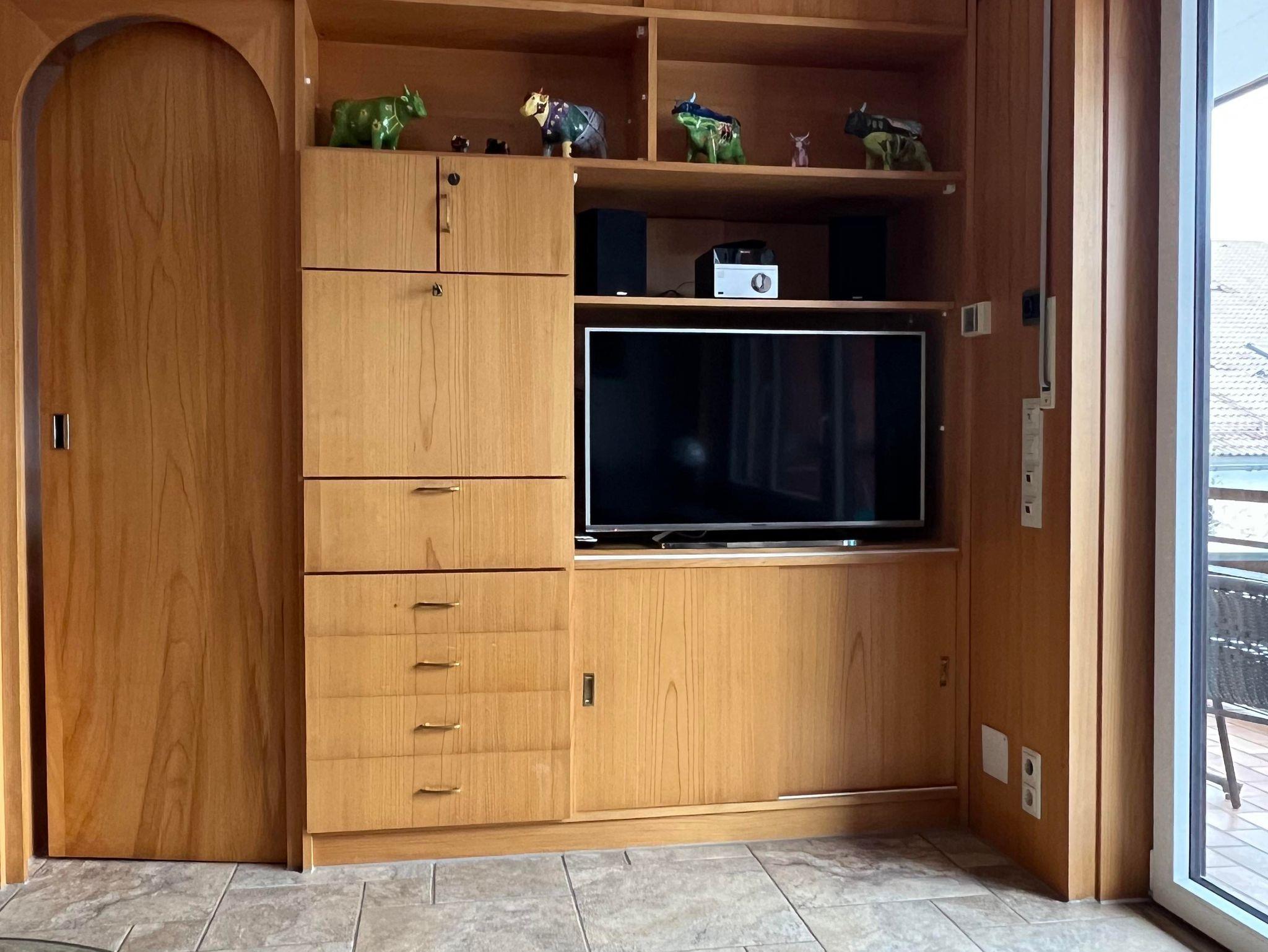 Das praktisch möblierte Wohnzimmer bietet Entspannung beim Fernsehen und relaxen.