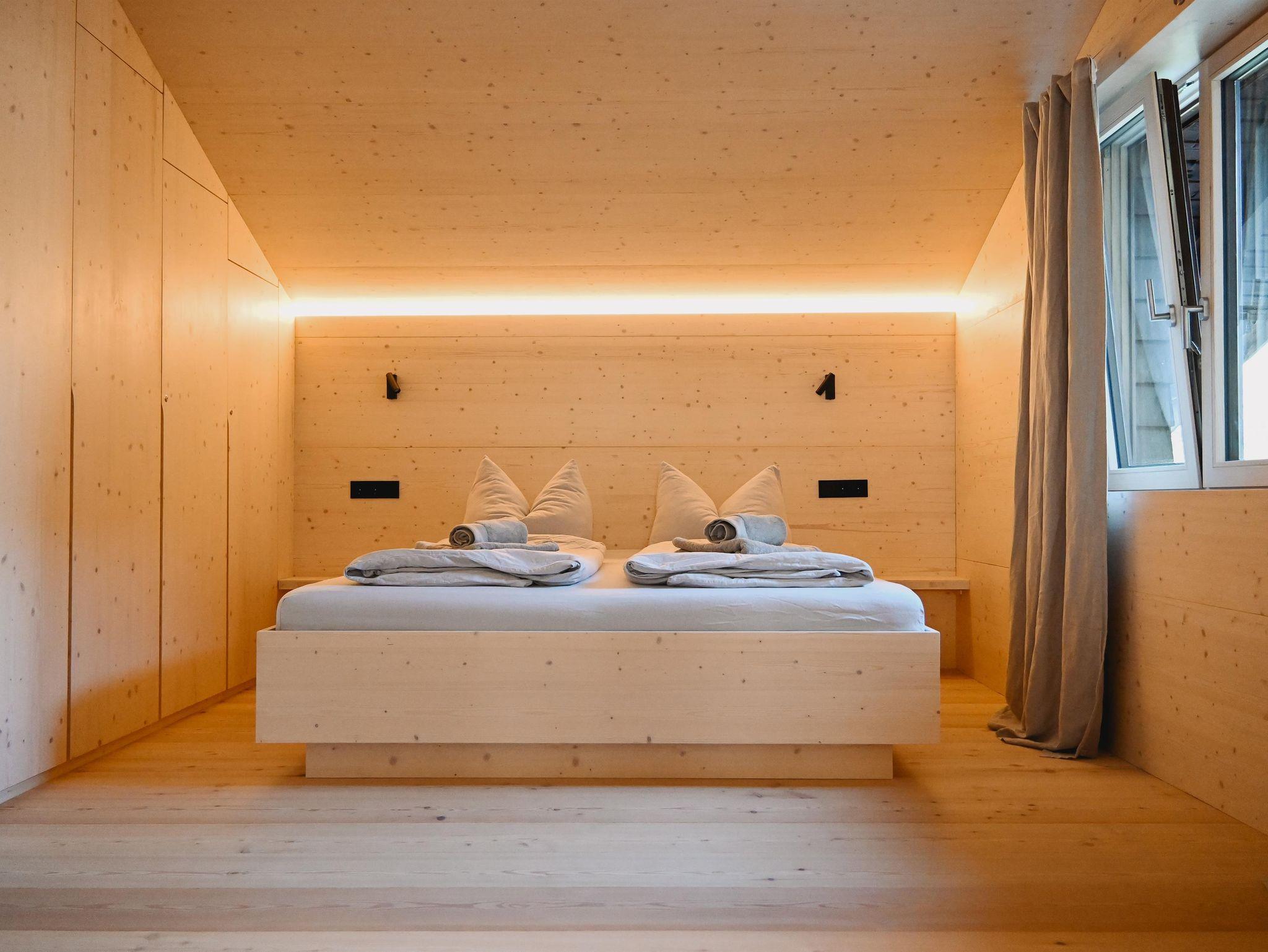 Die beiden Schlafzimmer sind ganz in Holz gehalten und verfügen über vollwertige Doppelbetten (1,80x2m) sowie geräumige Einbauschränke.