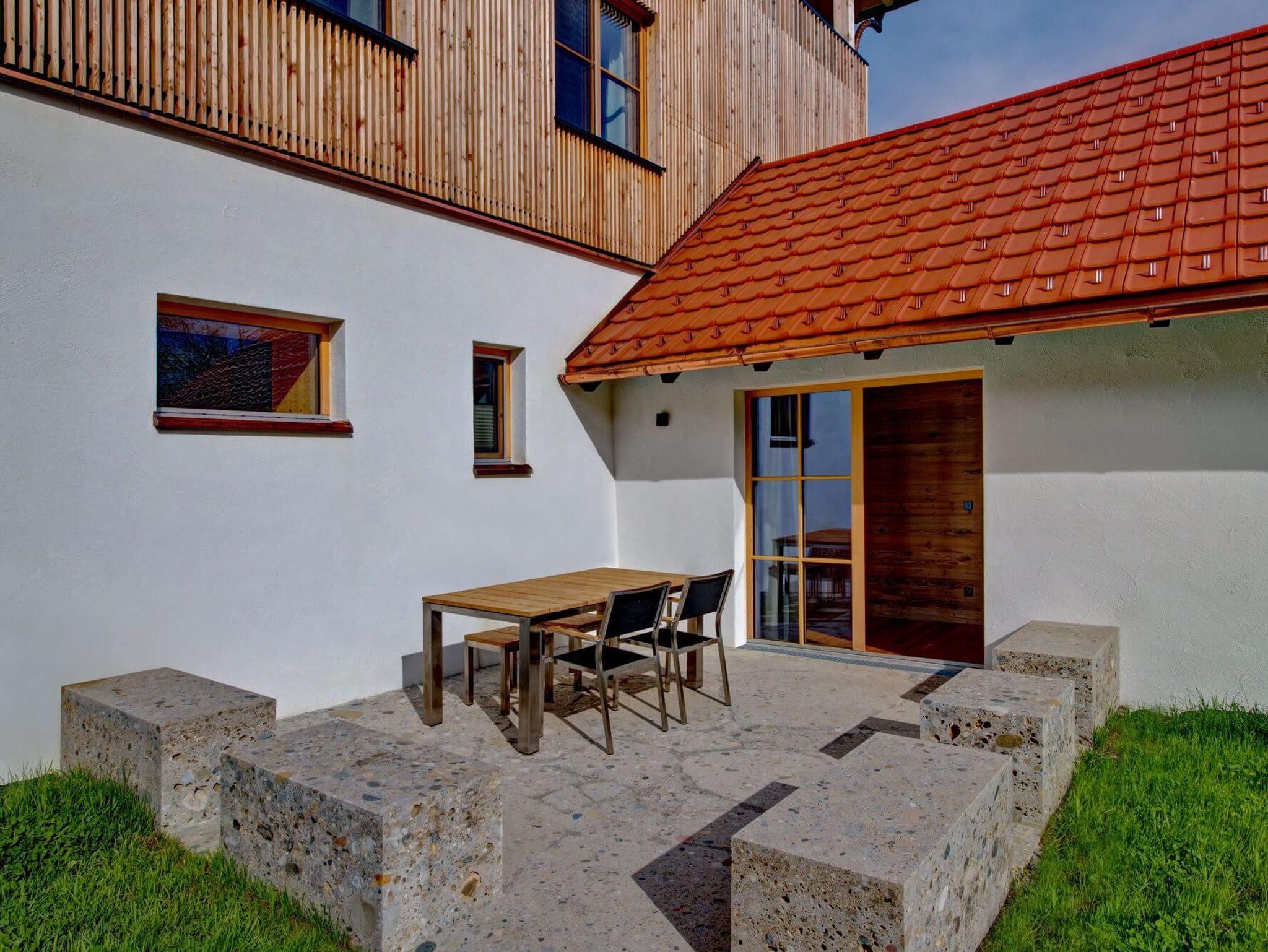 Nach einem Tag an der Natur genießen Sie den Blick aus der Sauna auf den Eibele Bach und das nahgelegene Österreich. Im separaten Wohnzimmer können Sie im Anschluss den Abend ausklingen lassen.