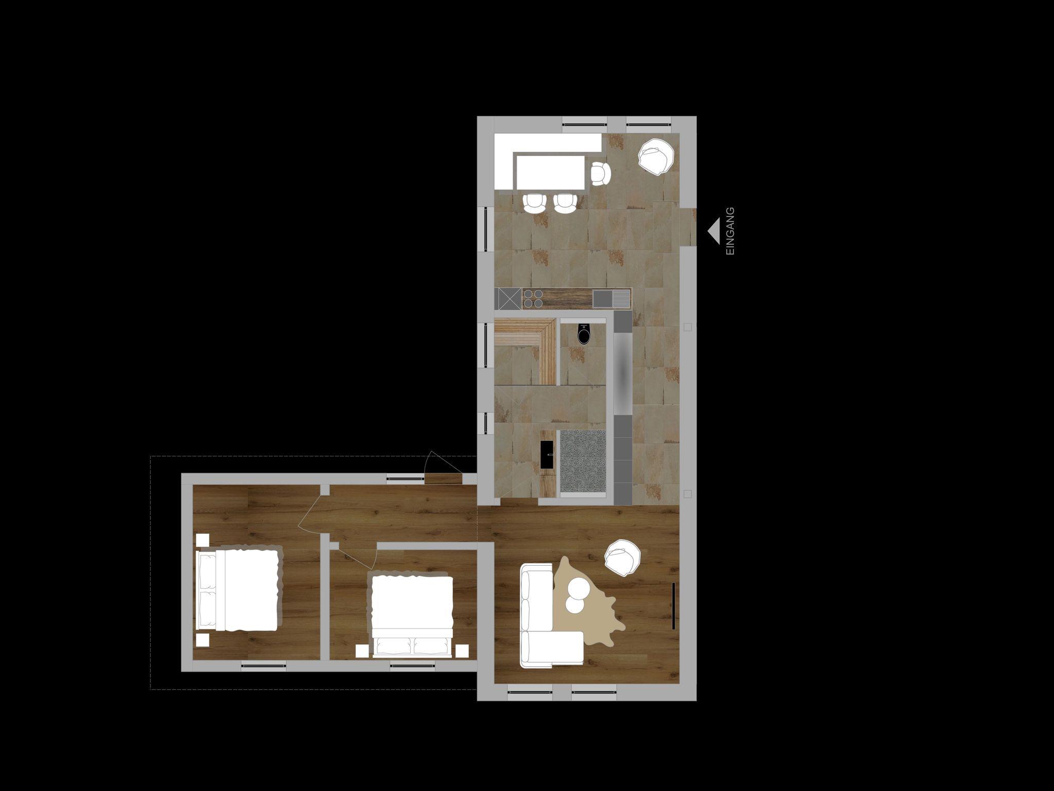 In den zwei separat gelegenen Schlafzimmern erwartet sie je 1 King-Size Doppelbett (200x200) mit wohlig weichen und bequemen Zirbelholz-Boxspringbetten.
