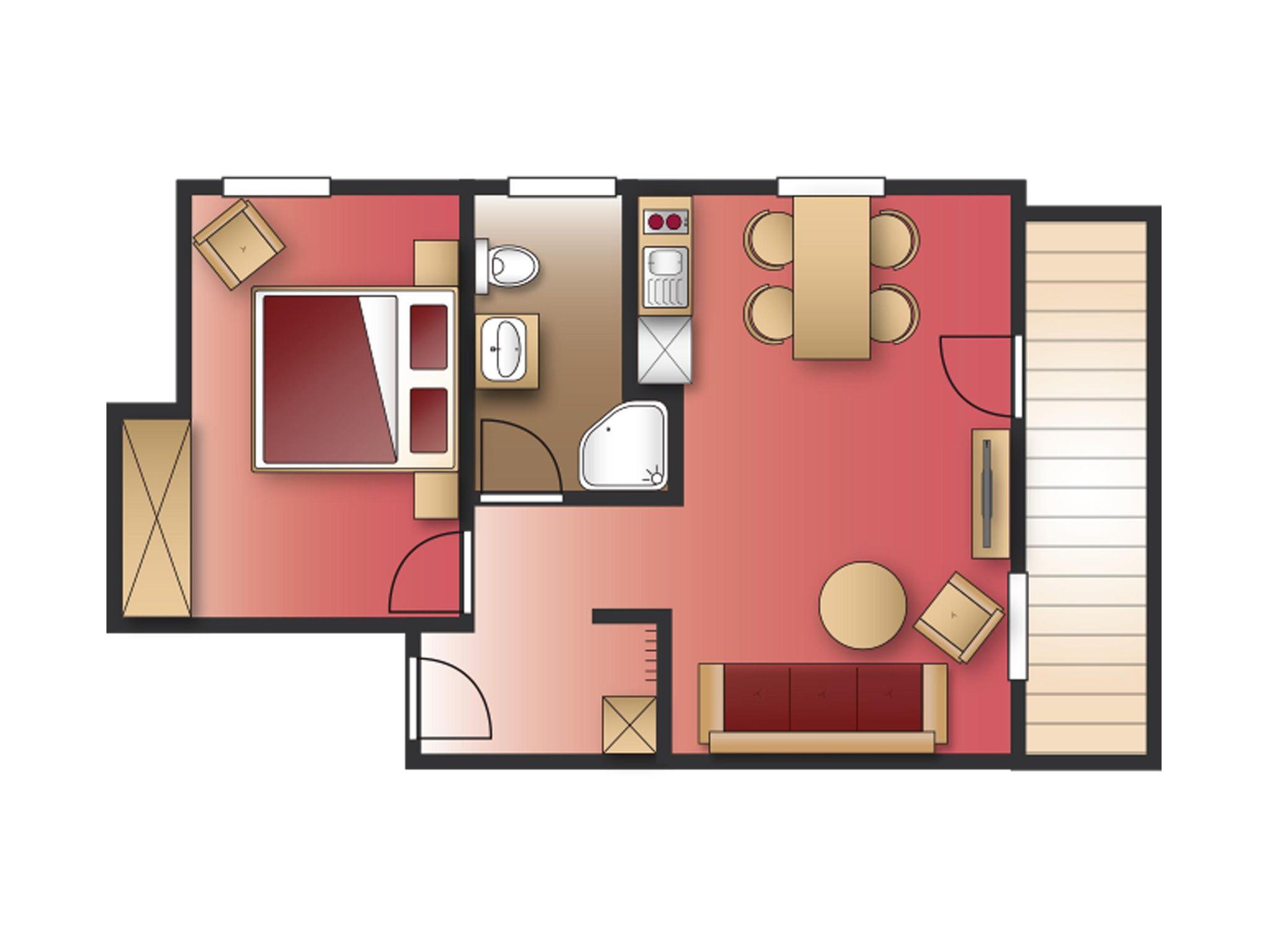 Geräumige Ferienwohnung für 2 Personen im 1.Stock mit Südbalkon. Die Wohnung hat ein separates Schlafzimmer mit Doppelbett. NEU: Ab jetzt mit Flachbildschirmfernseher.