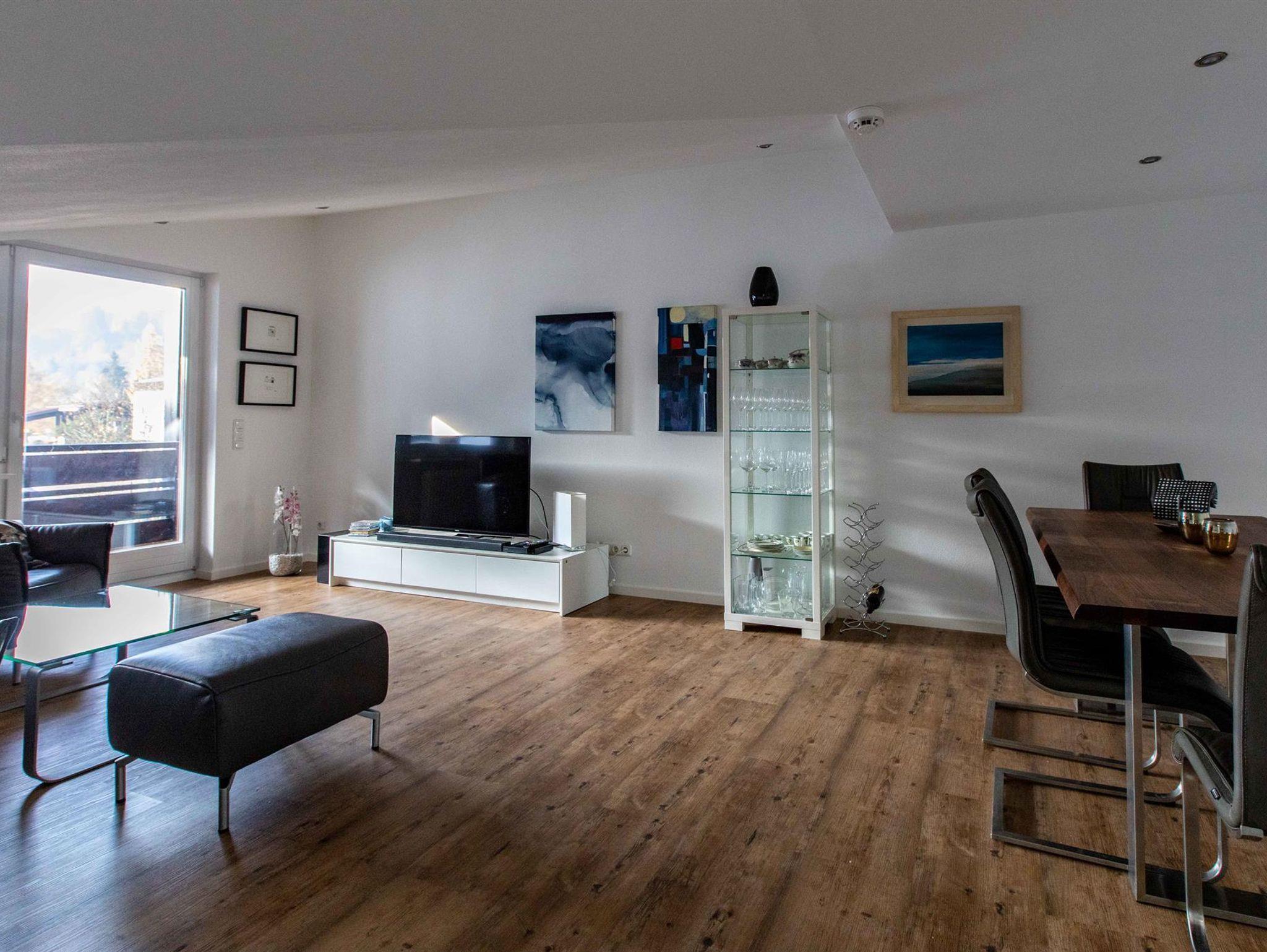Die Ferienwohnung liegt am schönen Kurpark nahe der Ortsmitte von Oberstaufen. Diverse Geschäfte, Boutiquen, Cafés und Restaurants befinden sich in kurzer Fußentfernung. Auch ein großer Abenteuerspielplatz bietet Kindern Spaß im Kurpark.Die 80 m² große Wohnung wurde erst im Herbst 2019 komplett neu ausgebaut und hochwertig ausgestattet. Sie dürfen sich auf ein modernes, hochwertig möbliertes Feriendomizil freuen, in dem sich nicht nur Ihre Kinder, sondern gegebenenfalls auch Ihr kleiner vierbeiniger Freund pudelwohl fühlen werden.Genießen Sie die Nachmittagssonne von den Loungesesseln auf dem Südbalkon und die Aussicht auf die Berge und die Morgensonne beim Frühstück in der Küche oder auf dem angrenzenden zweiten Balkon.Machen Sie es sich gemütlich am großen Esstisch oder in der Ledersitzgruppe vor dem großen Flachbildfernseher mit Blue-Ray-Player. Ihre eigene Musik hören Sie mittels verschiedener Bluetooth-Lösungen im Wohnzimmer und in der Küche.