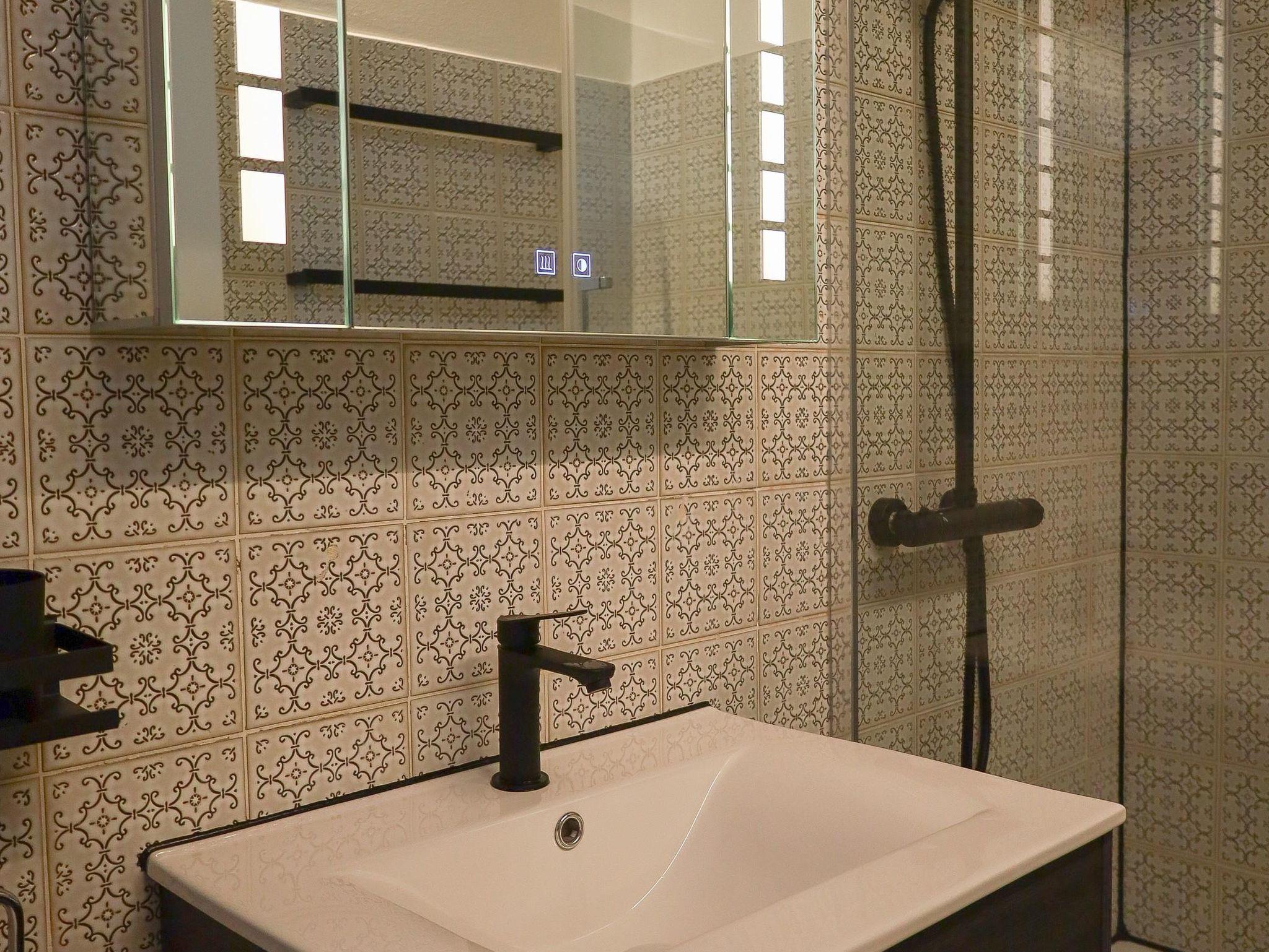 Die Küche ist voll ausgestattet mit Herd, Kühlschrank, Backofen, Spülmaschine und allem was Sie zum Kochen und Essen benötigen. Das Badezimmer ist mit frischen Handtüchern und Föhn ausgestattet.