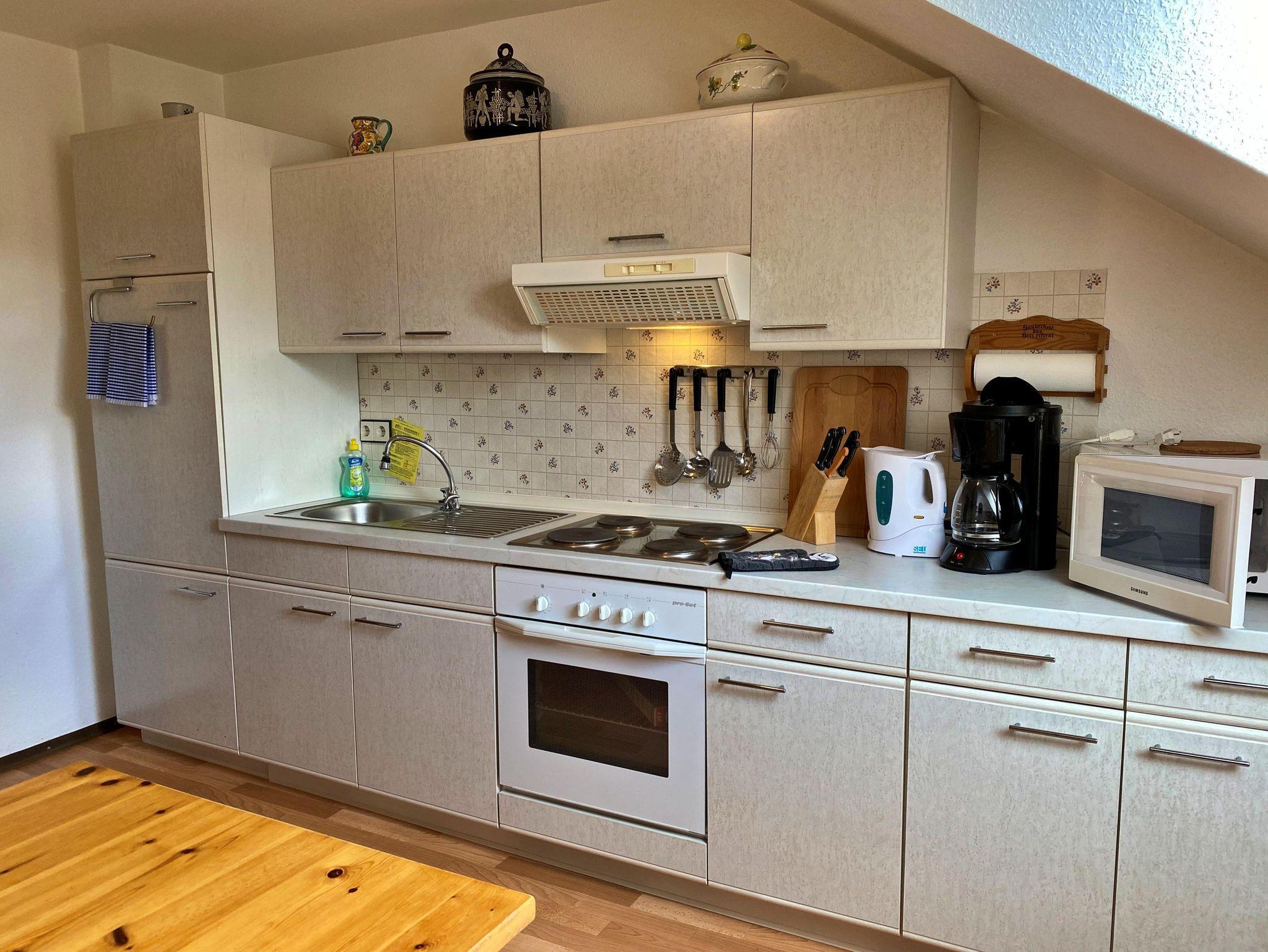 70 m² in der 1.Etage mit 2 SchlafZi (2x Doppelbett), zus. Bett vorhanden, 2 Bäder (Dusche+WC), 1 Wohnraum mit integrierter Küchenzeile, Sat-TV, CD-Radio, Balkonbenutzung, max. 5 Pers, HAUSTIERE in dieser FeWo erlaubt