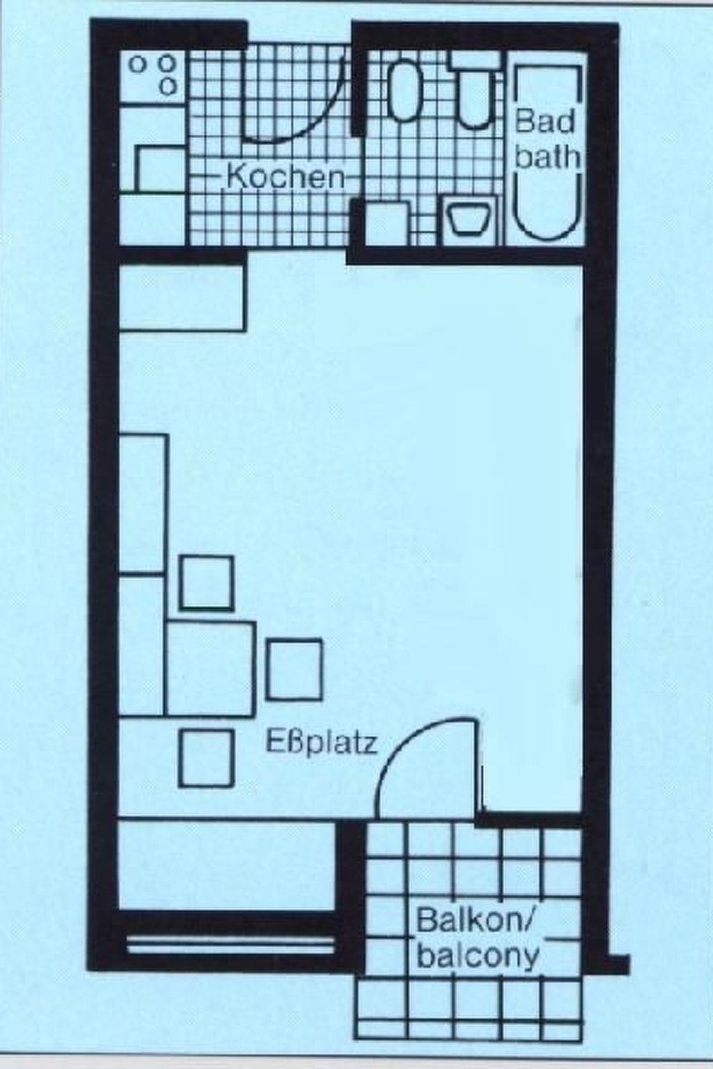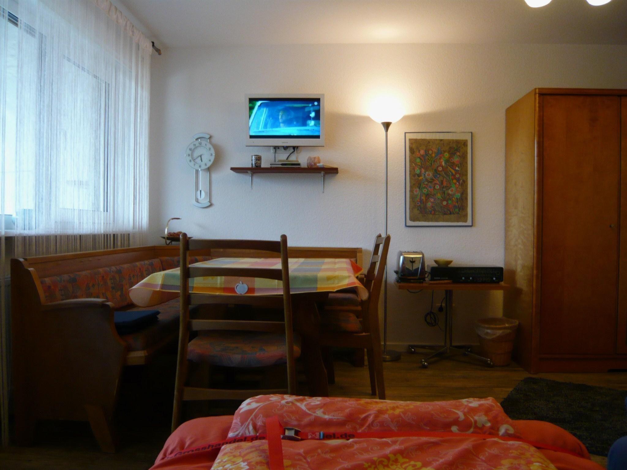 The 1-room flat with separate kitchen is furnished with wall cupboard beds, a sofa bed, dining area in the retro style of the 50s, SAT-TV, W-Lan. PVC flooring and bed linen suitable for allergy sufferers. The bathroom is equipped with shower/washbasin/WC.