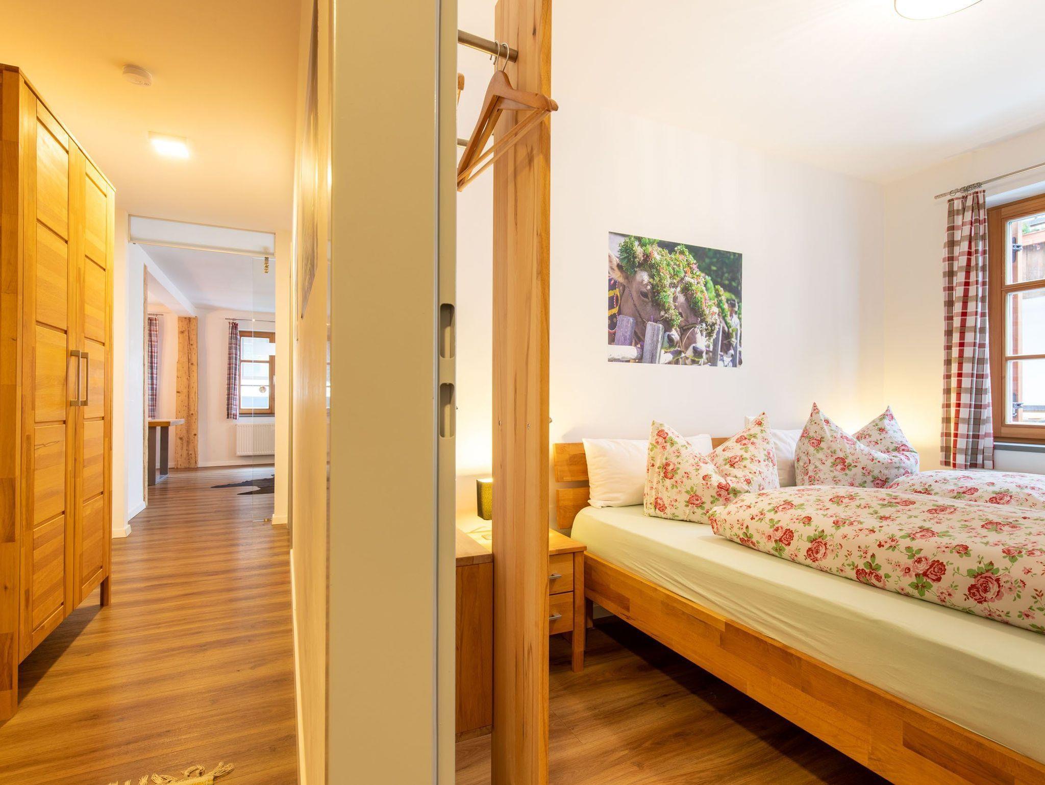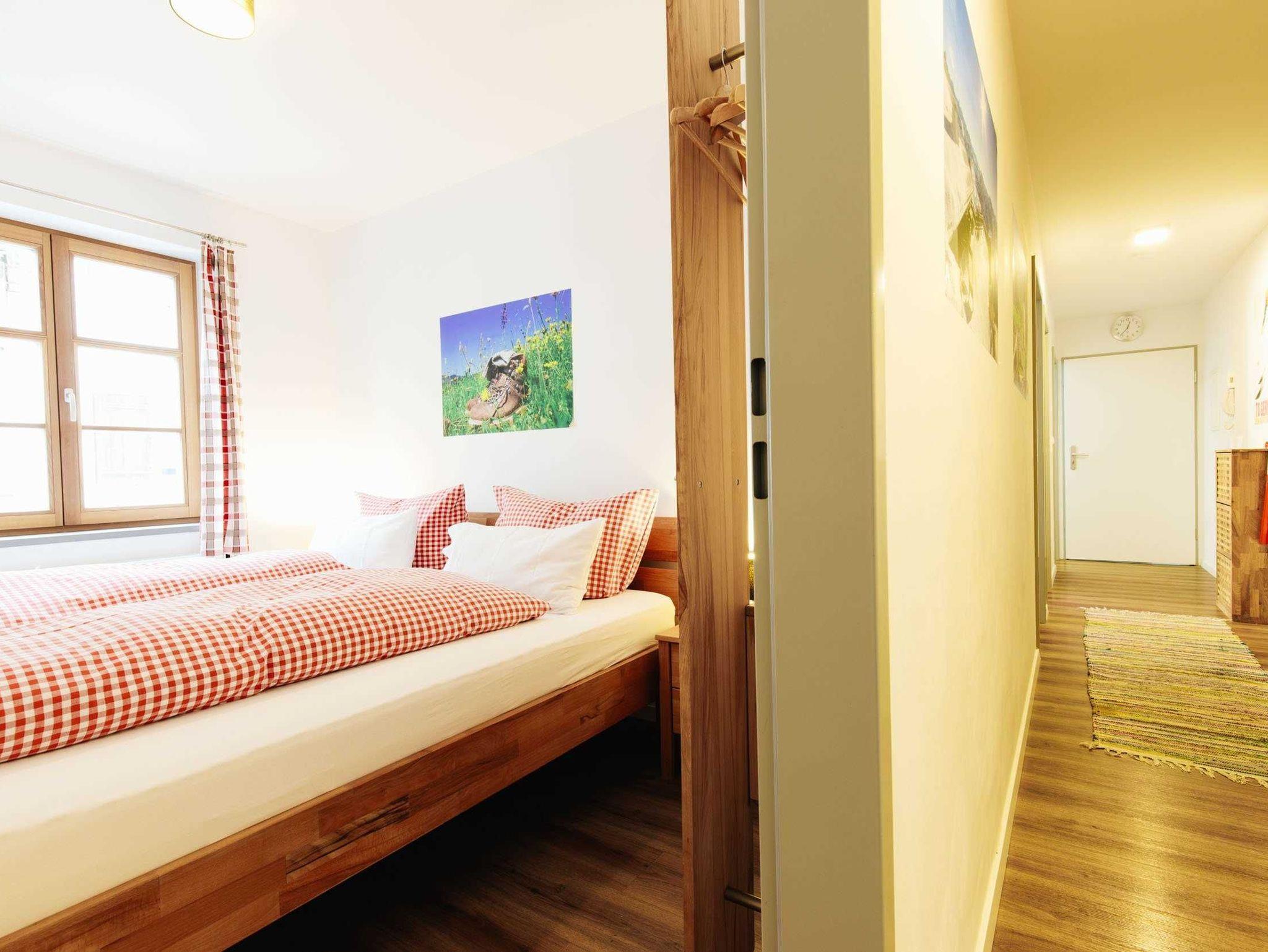 3 Zimmer, Küche, Bad Ferienwohnung mit 62 m² für 1 bis 4 Personen, großes Wohnzimmer, zwei Schlafzimmer mit Doppelbetten, separate Küche, 1. Obergeschoß, Westbalkon, Kinderzustellbett und Hochstuhl auf anfrage möglich