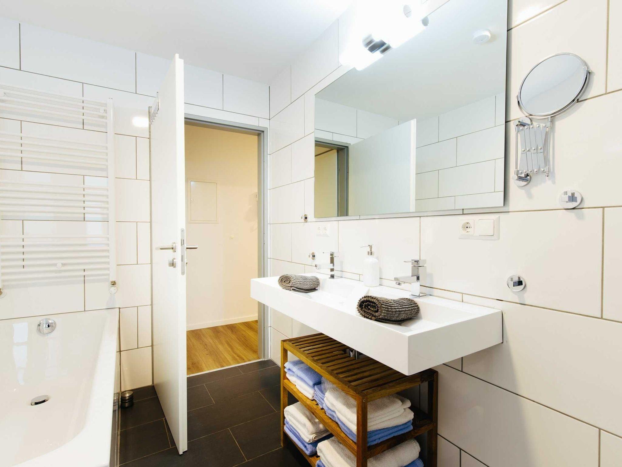 Alle Wohnungen mit Balkonen bzw. Terrasse, jede Wohnung einzigartig, traditionelle Elemente kombiniert mit modernem Design, gut ausgestattete Küchen mit Spülmaschinen, z.T. Induktion, Betten mit Bandscheibenmatratzen, Bäder mit Wanne (außer in W2) und separater Dusche.