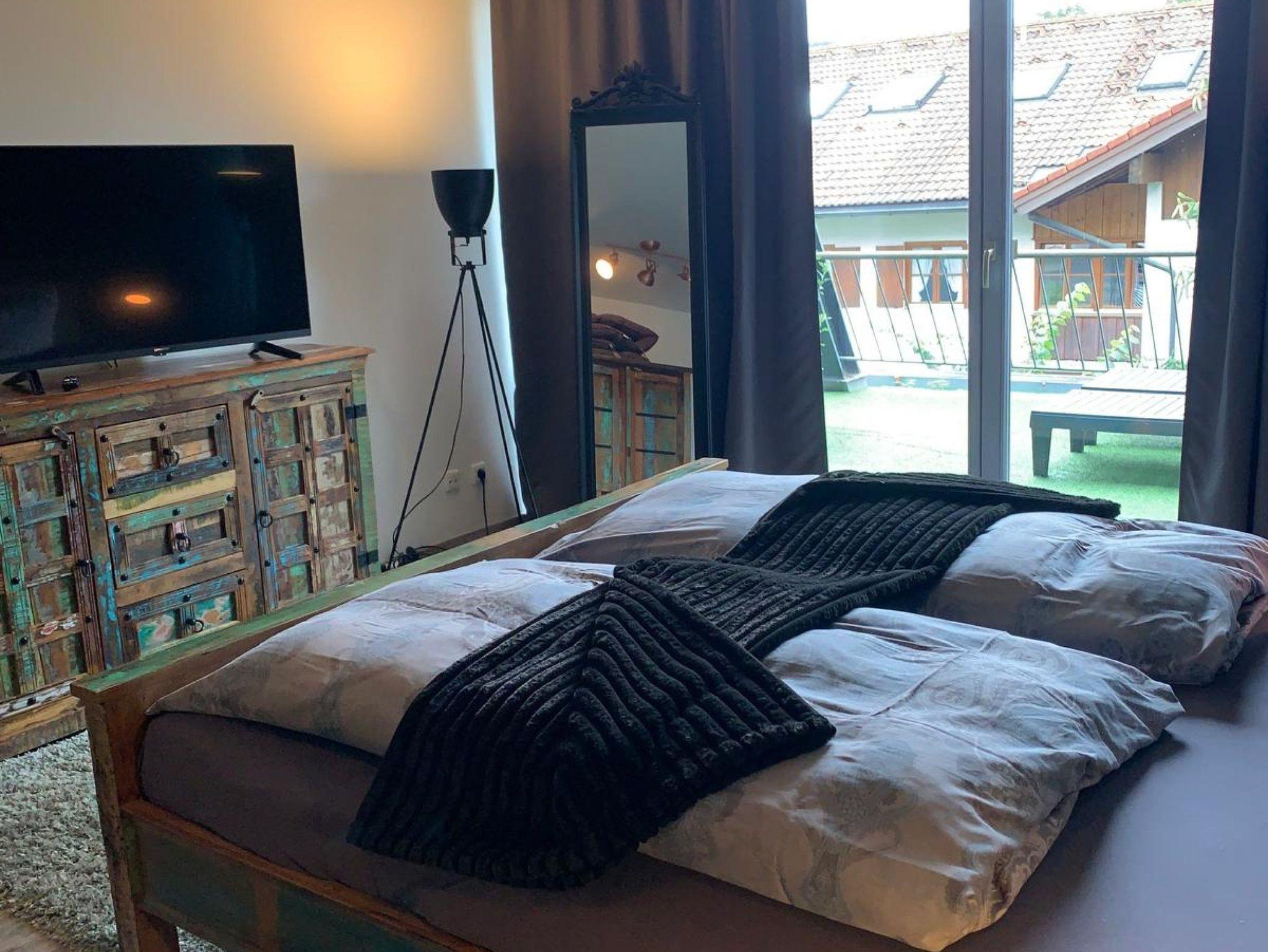 Die Ferienwohnung präsentiert sich im modernen Vintage-Stil mit ausgefallenen Deko-Elementen.