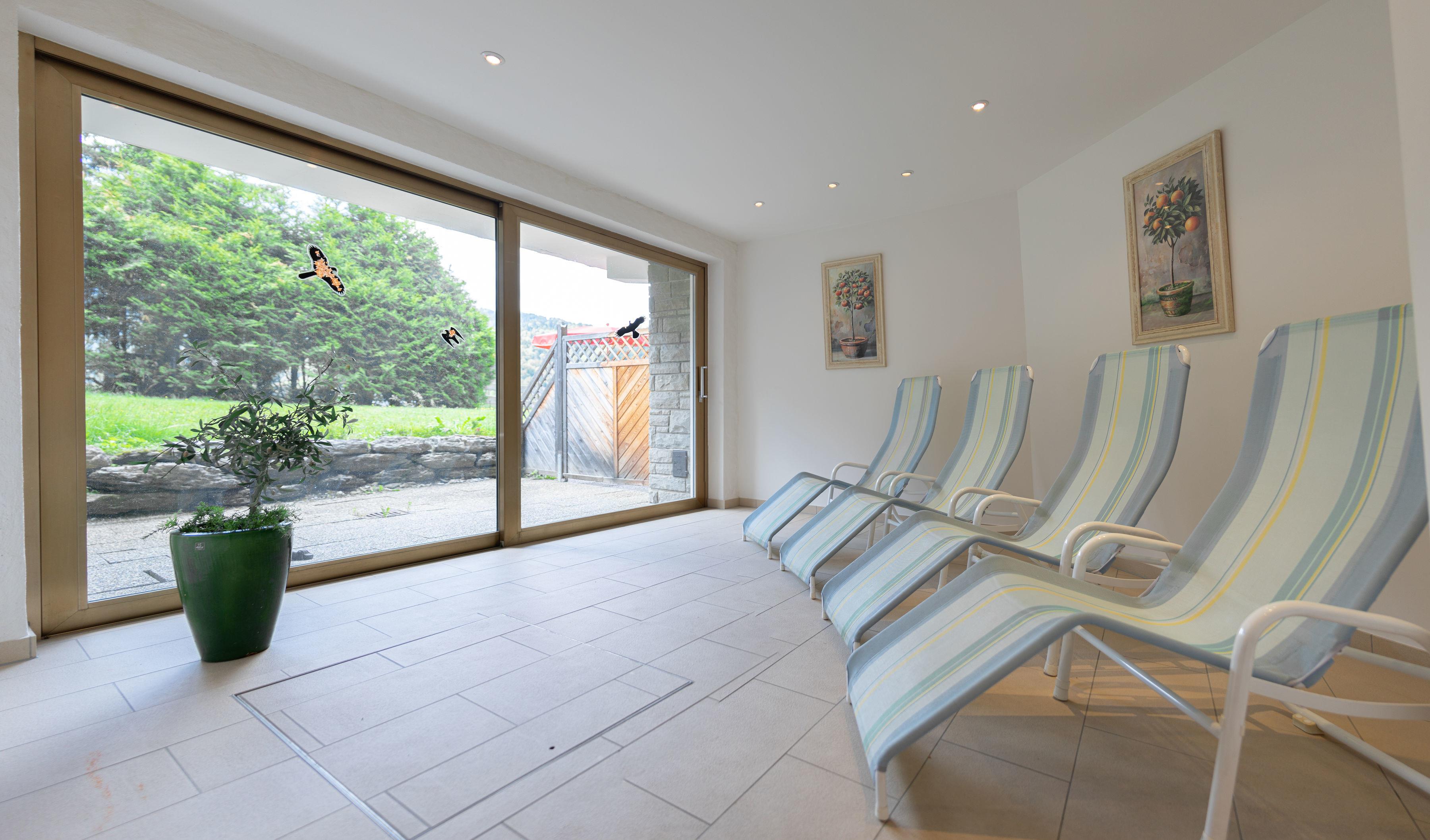 Ein Saunabereich mit finnischer Sauna, Erlebnisduschen sowie Ruheraum mit Südterrasse laden zur Entspannung ein.