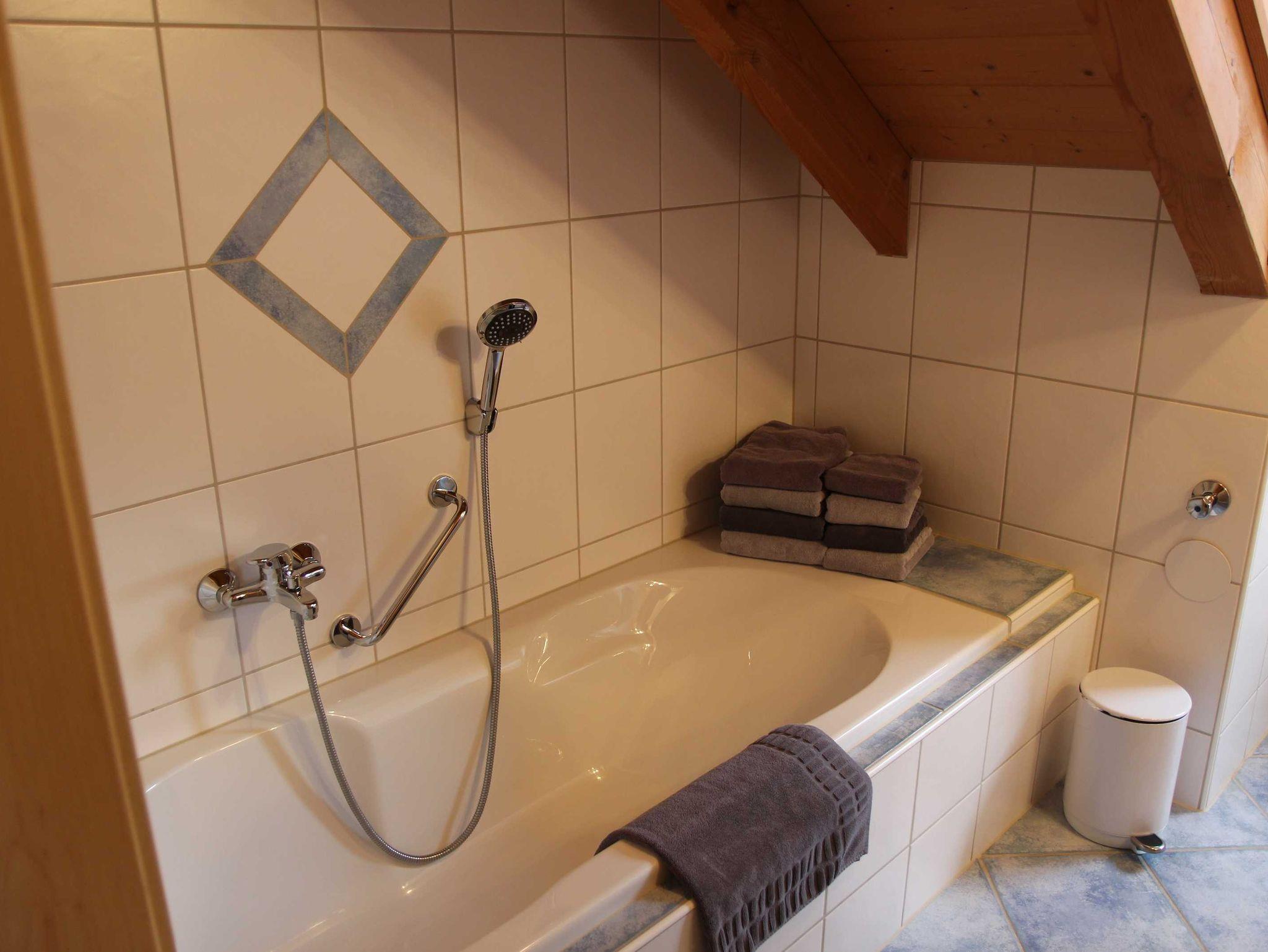 Die Ferienwohnung mit einer Größe von 57 qm bietet Platz für zwei bis vier Personen. Neben einer voll ausgestatteten Küche erwarten Sie hier ein Schlafzimmer mit Doppelbett und Platz für ein Kinderbett, eine gemütliche Wohnecke mit Schlaffunktion, ein Essbereich und ein gepflegtes modernes Badezimmer mit Dusche und Badewanne. Vom Balkon aus genießen Sie einen Panoramablick über Wiesen, Felder und Weinberge.
