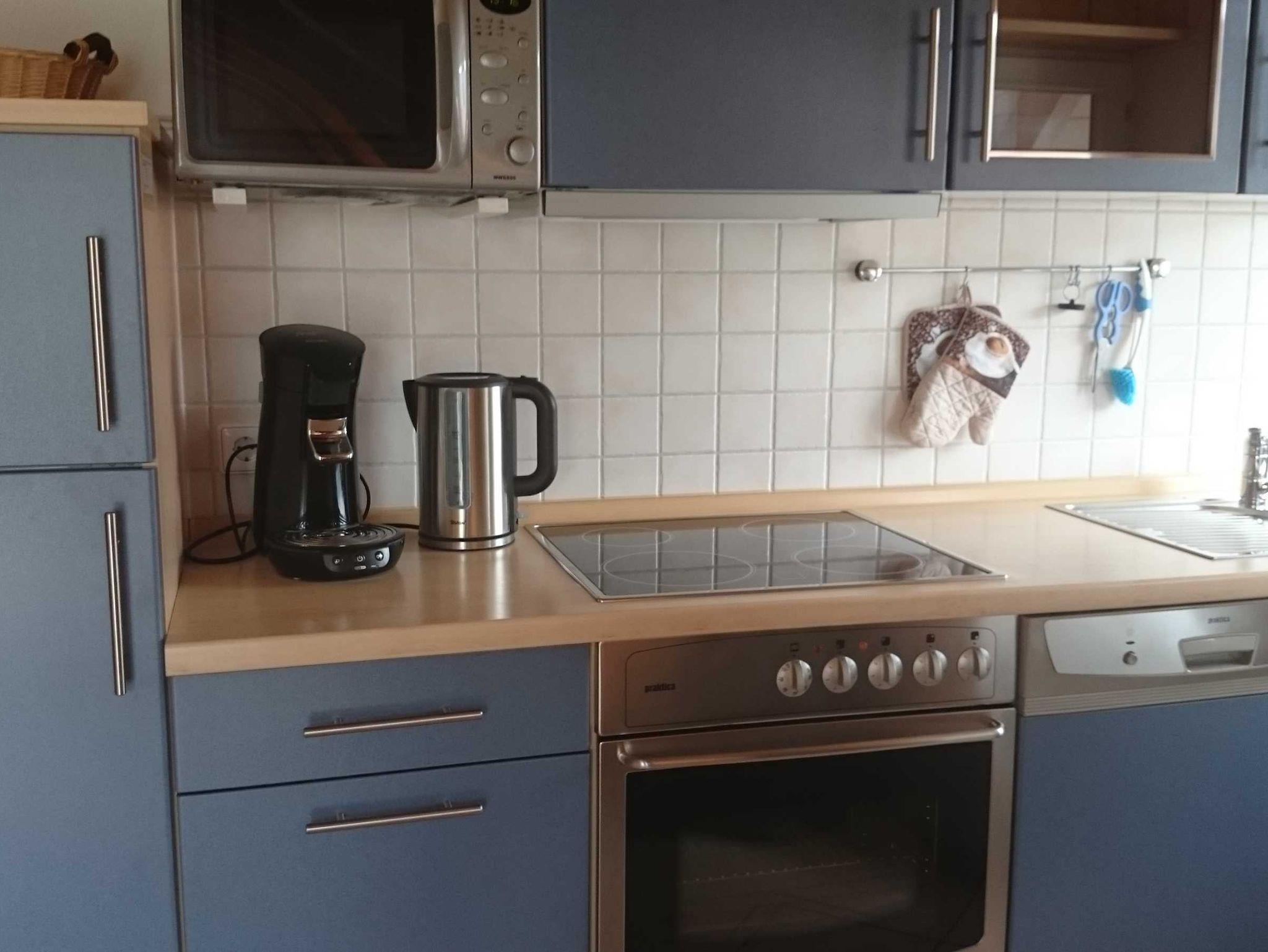 Ausstattung: Garderobe, Schlafzimmer mit Doppelbett, Wohnzimmer mit 40 Flachbildfernseher, voll ausgestattete Küchenzeile mit Kühl/Gefrierschrank, Herd/Backofen, Mikrowelle, Kaffeemaschine, Wasserkocher, Toaster, Eierkocher, Essecke, Bad mit Dusche, Badewanne und Föhn. Zusätzliches Kinderbett im Schlafzimmer möglich. Ihr Auto können sie wettergeschützt unter dem Carport parken. Für ihre Fahrräder steht ein abschließbares Fahrradhäuschen zur Verfügung.